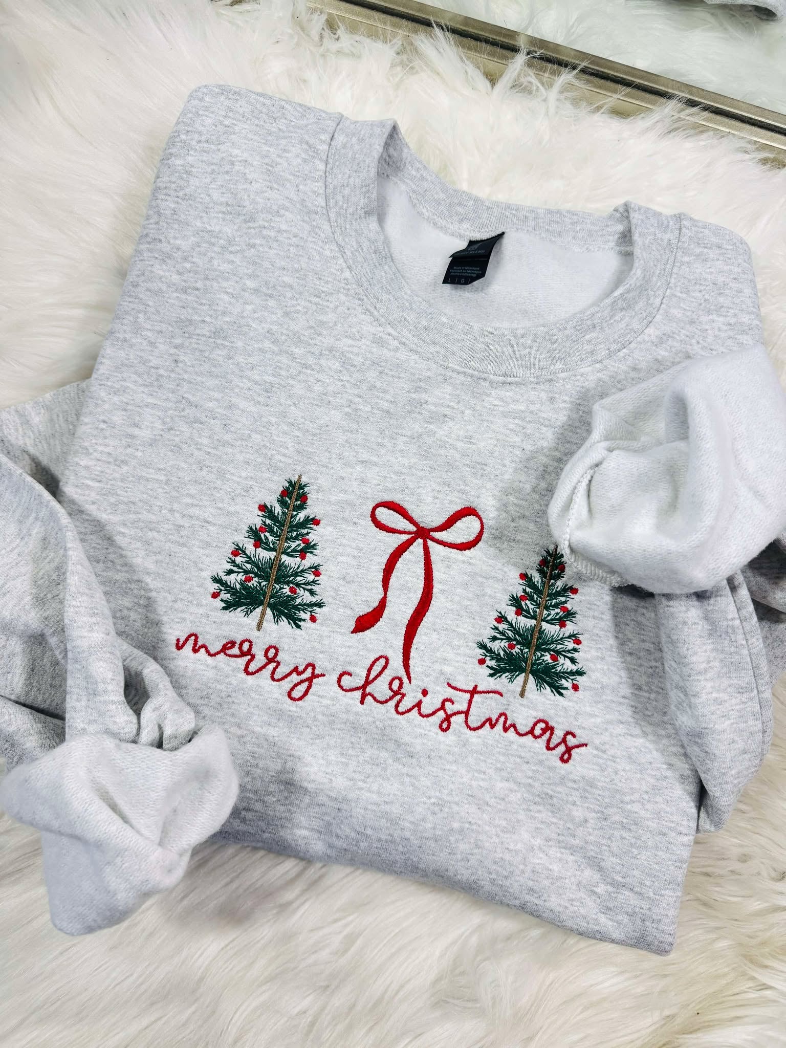 Merry Christmas Tree/Bow Ash Grey Sweatshirt