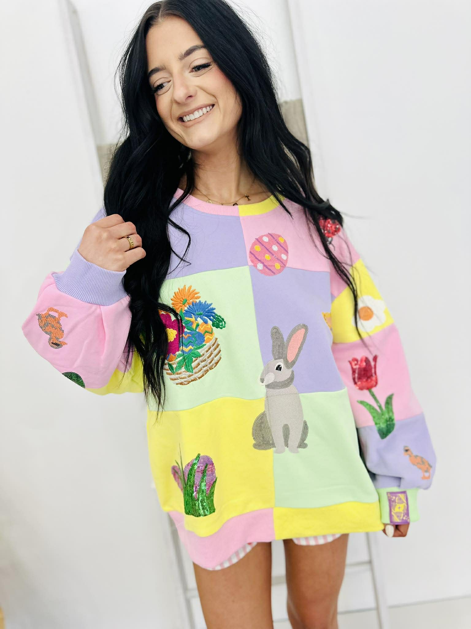 Queen Of Sparkles Pastel Colorblock Easter Icon Sweatshirt