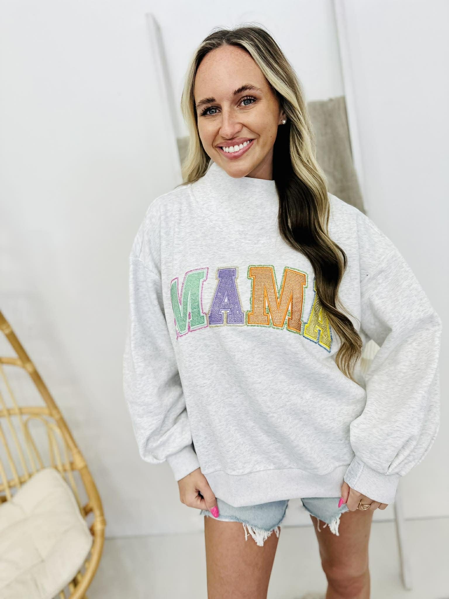 Queen Of Sparkles Grey Multi 'Mama' Mock Neck Sweatshirt