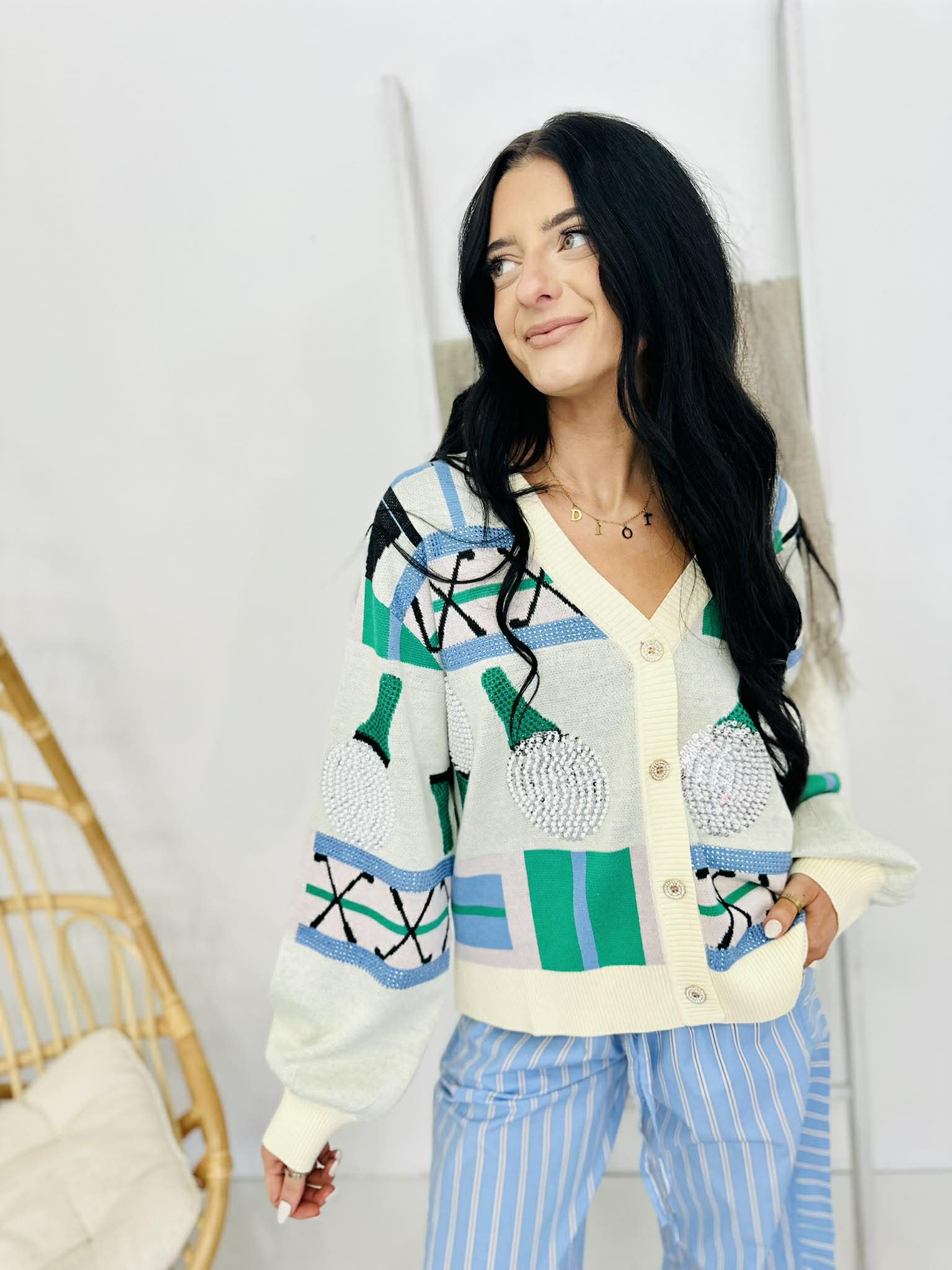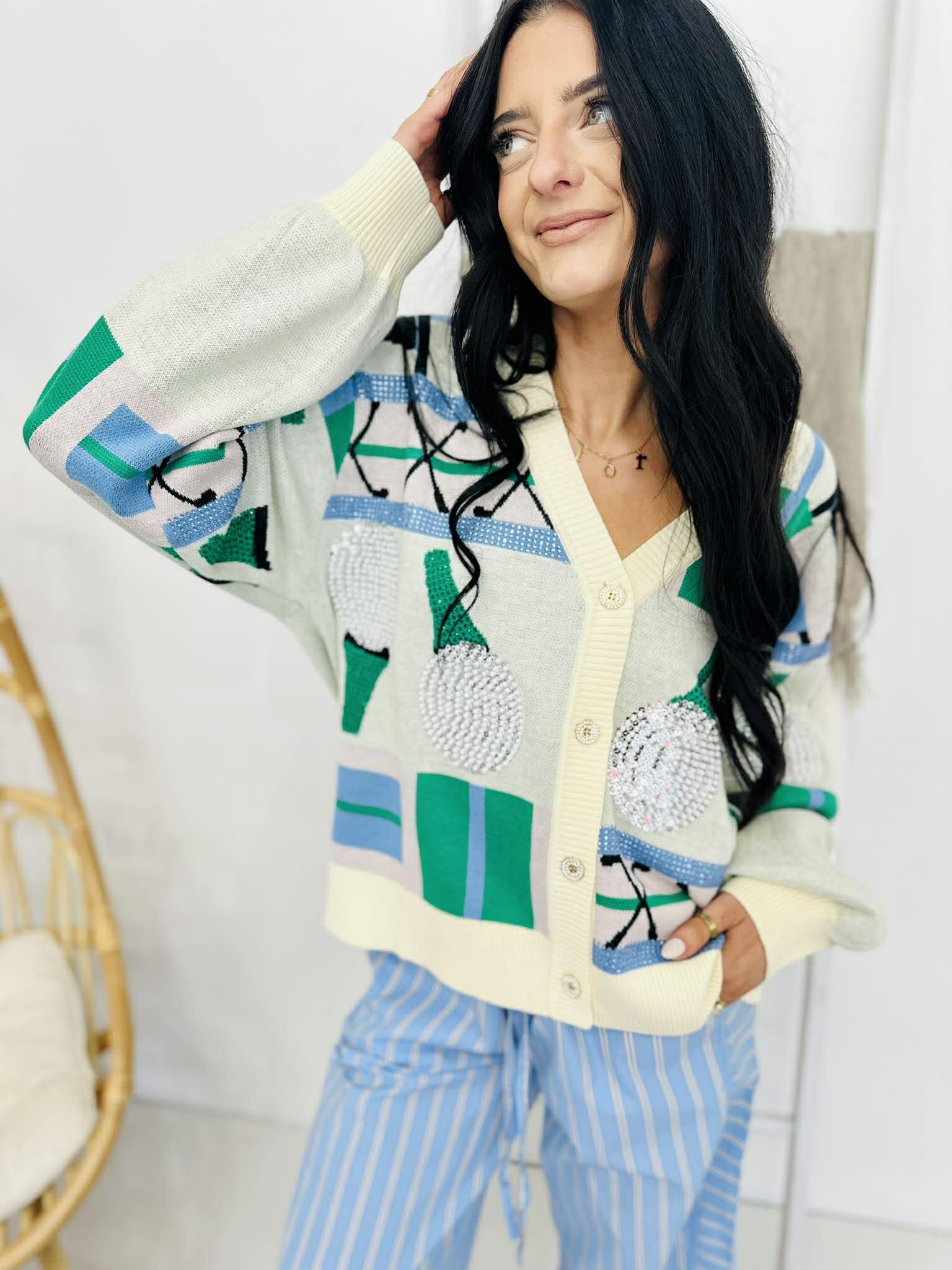 Queen Of Sparkles Multi Golf Ball on Tee Icon Button Up Cardigan