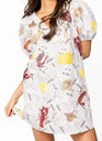 Queen Of Sparkles Black & White Seafood On Newspaper Cotton Dress
