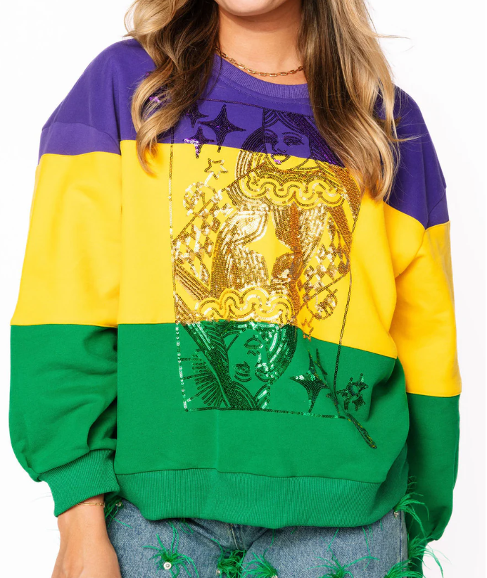 Queen Of Sparkles Purple, Yellow & Green Striped Queen Card Sweatshirt