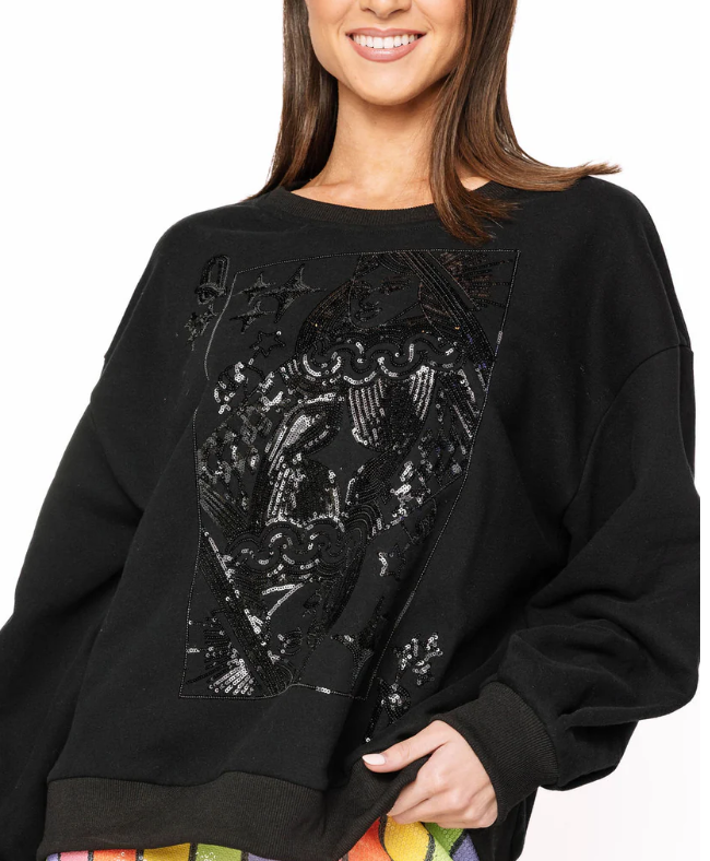Queen Of Sparkles Black Tonal Queen Card Sweatshirt