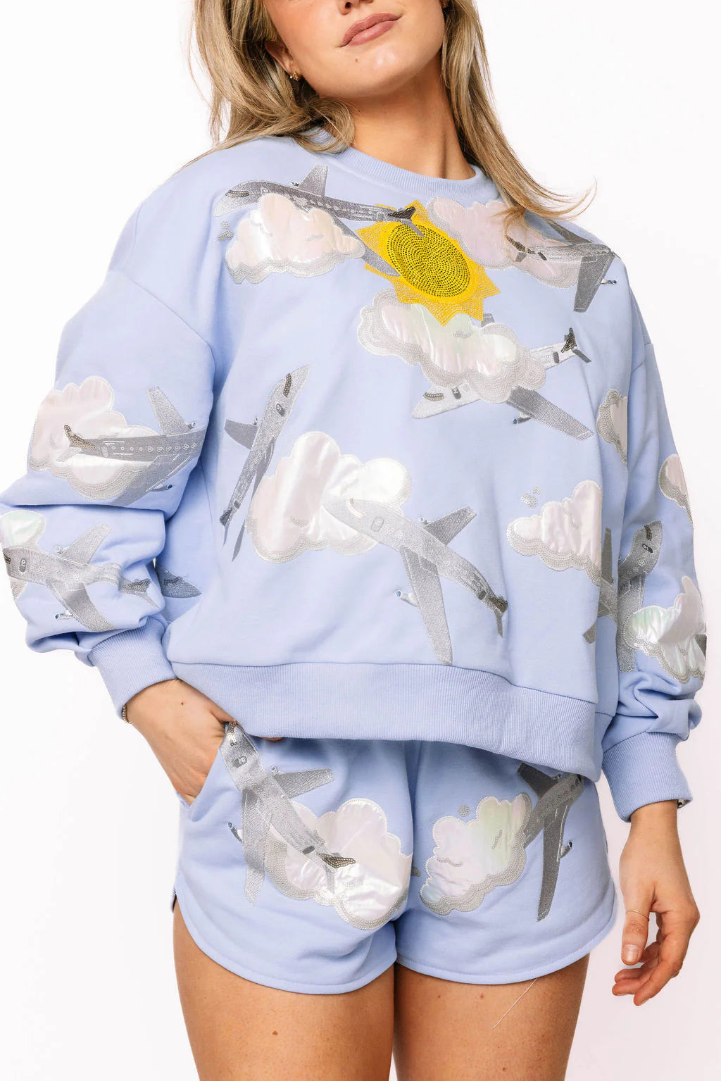 Queen Of Sparkles Blue Airplanes in Sky Sweatshirt