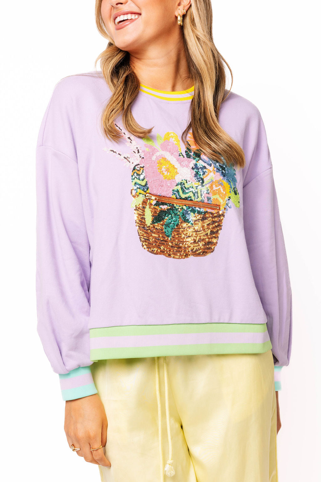 Queen Of Sparkles Lavender Easter Egg & Flower Basket Sweatshirt
