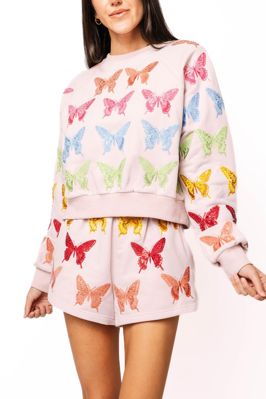Queen Of Sparkles Light Pink Multi Butterfly Sweatshirt