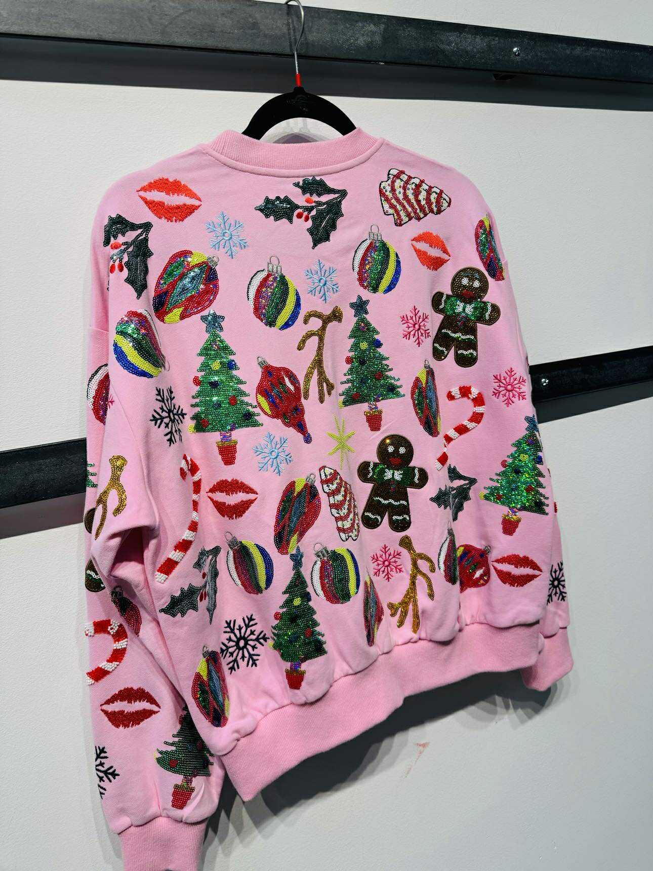 Queen Of Sparkles Light Pink Christmas Icons Sweatshirt