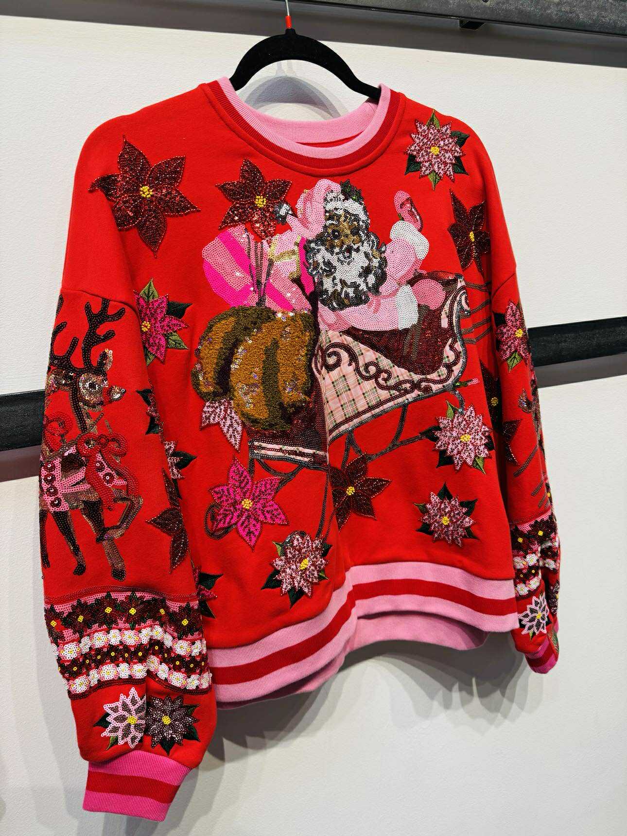 Queen Of Sparkles Red & Pink Vintage Poinsettia Santa Sweatshirt