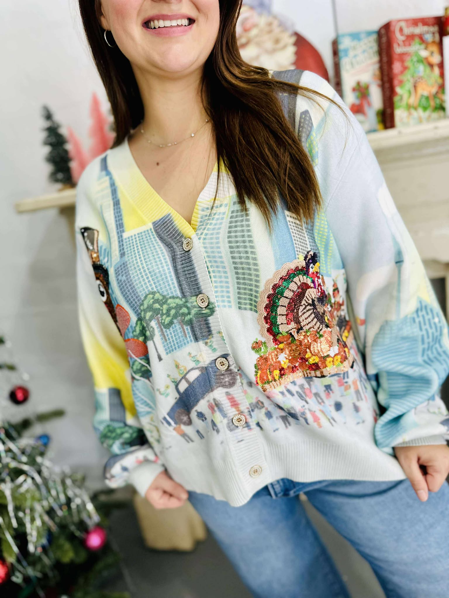 Queen Of Sparkles Multi Thanksgiving Parade Button Up Cardigan