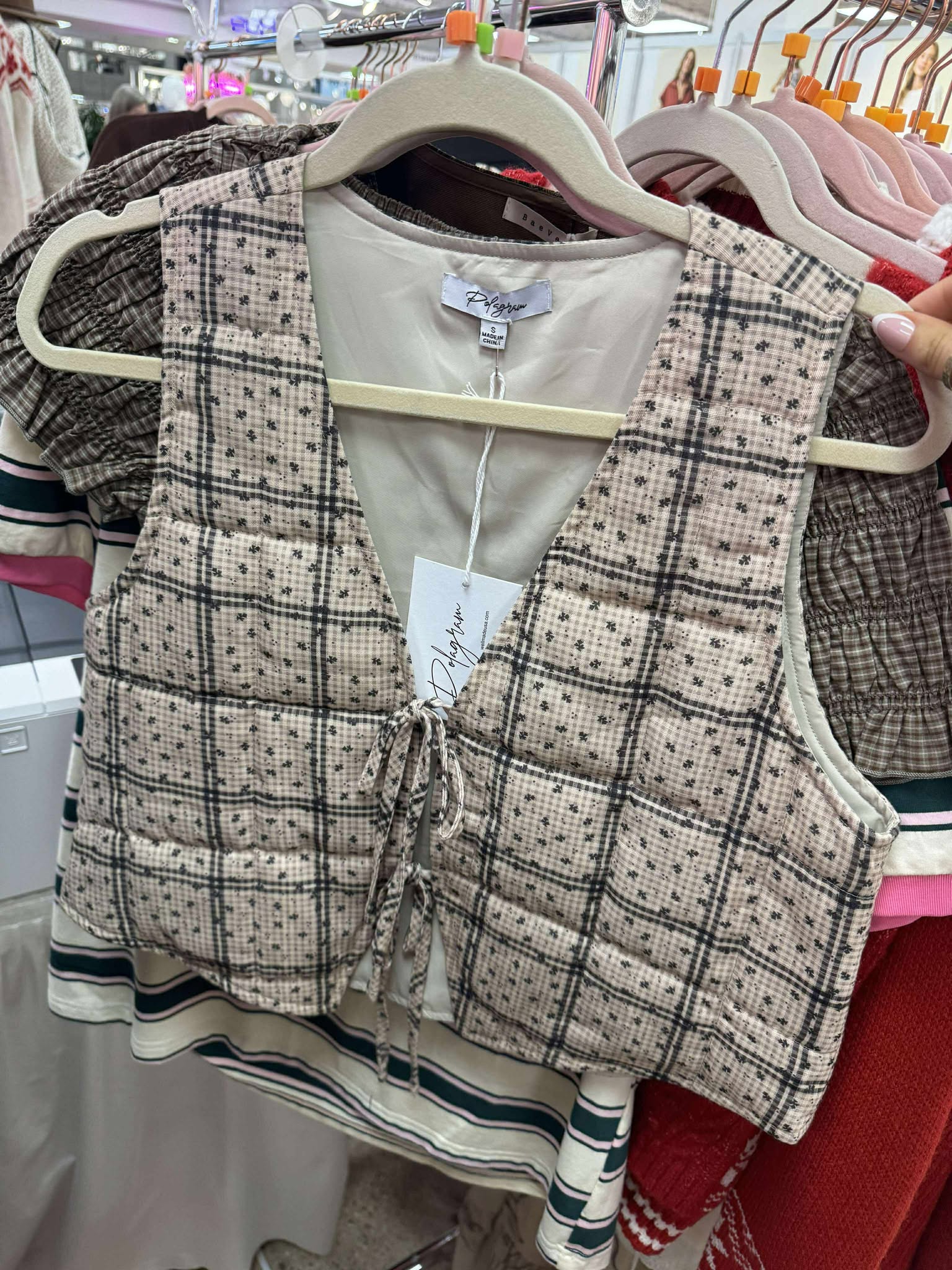 Plaid Tie Quilted Vest