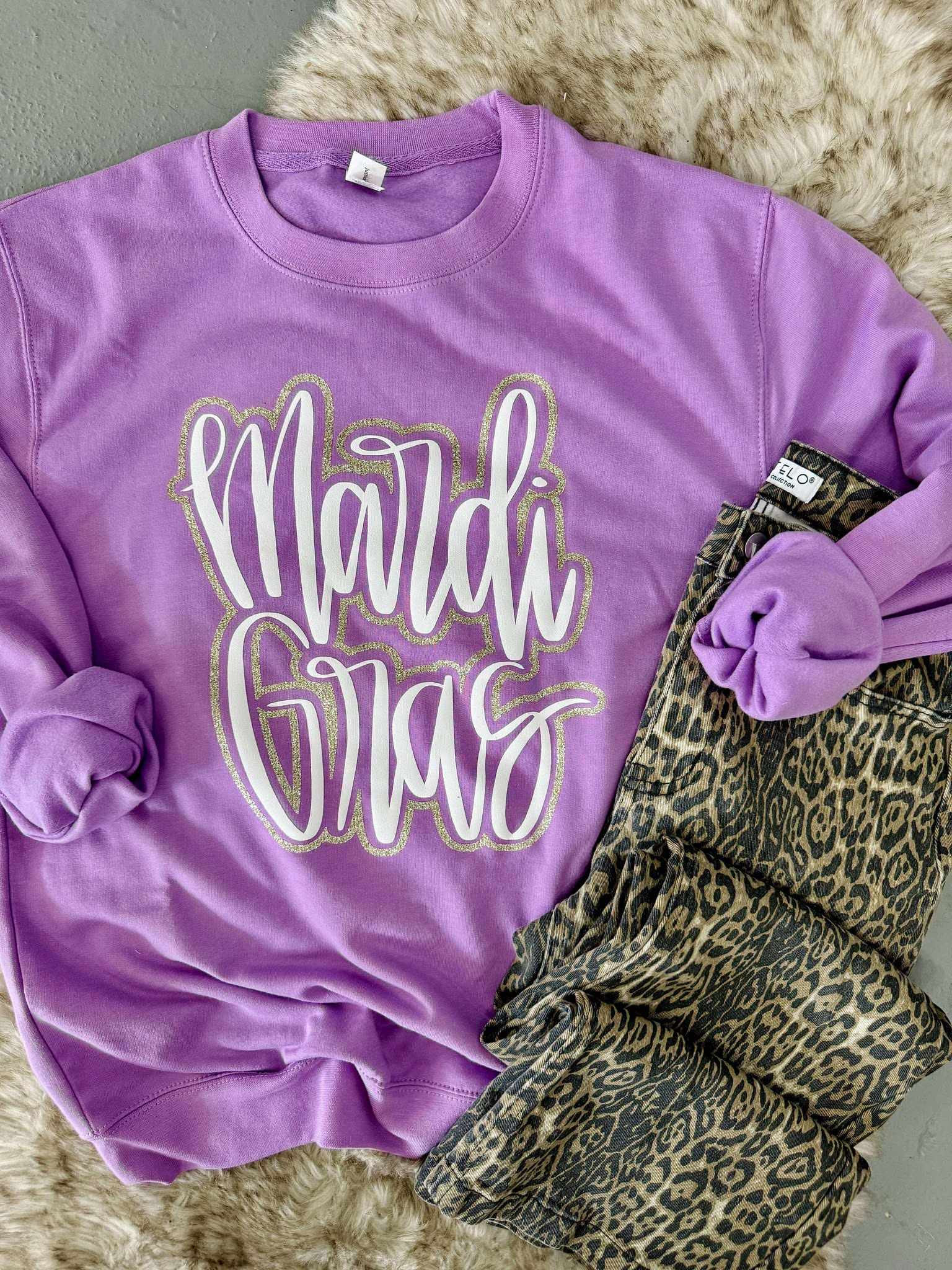 Mardi Gras Glitter Puff Lavender Sweatshirt
