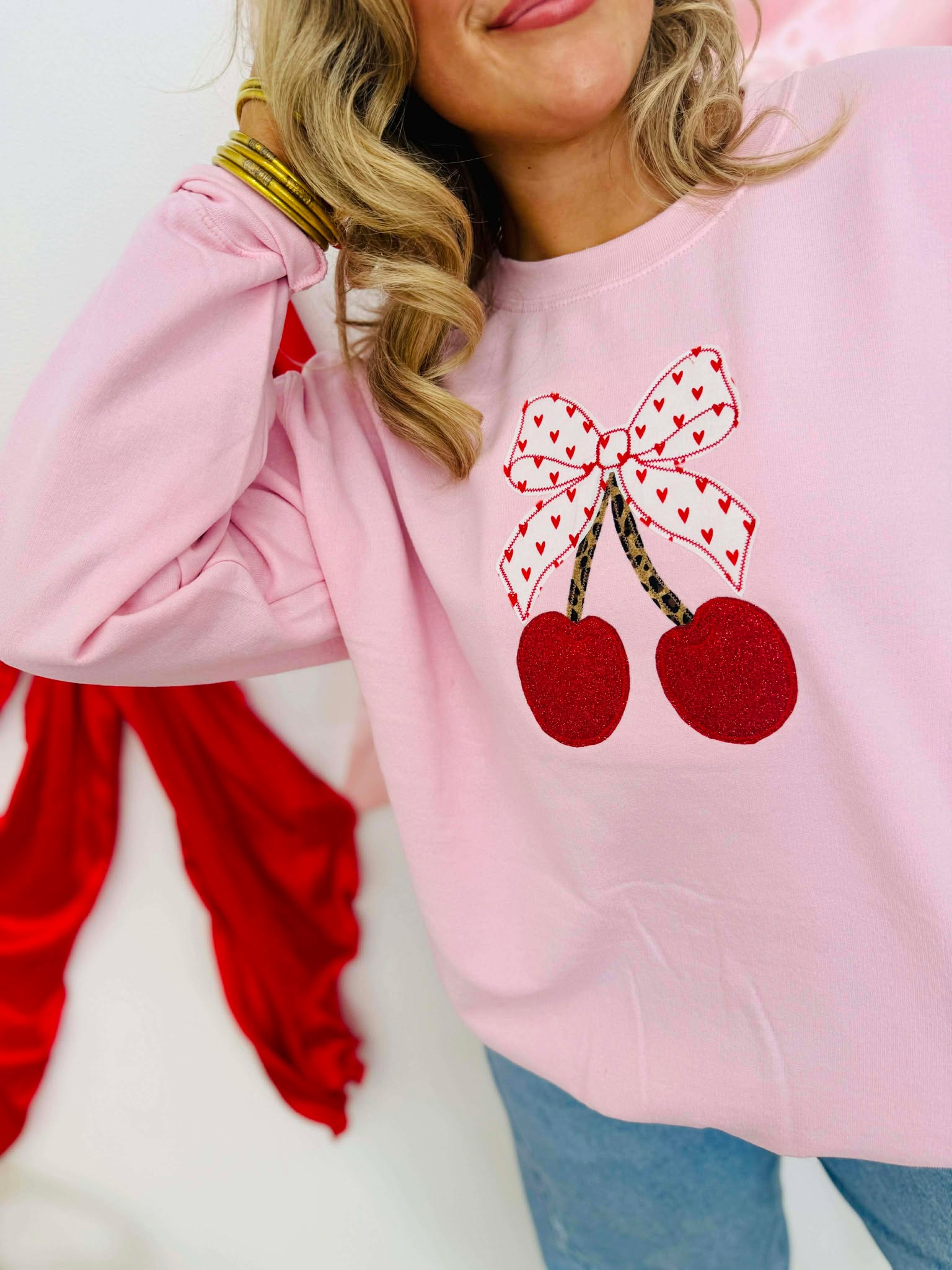 Cherry Love Applique Light Pink Sweatshirt