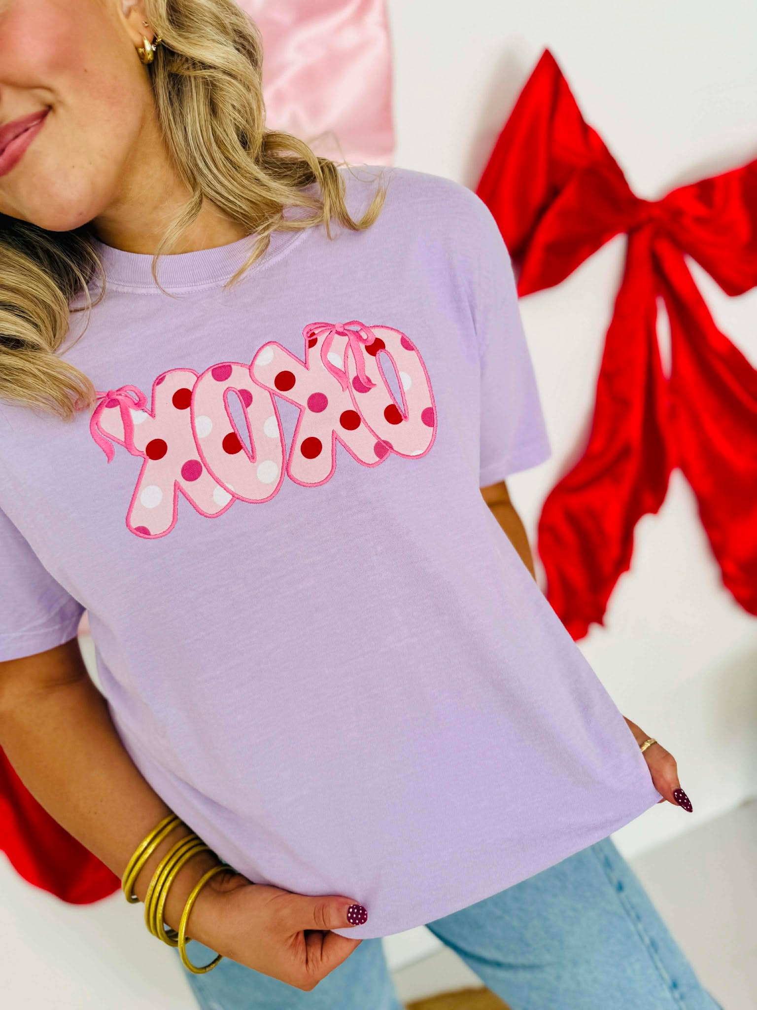 XOXO Polka Dot Applique Orchid Graphic Tee