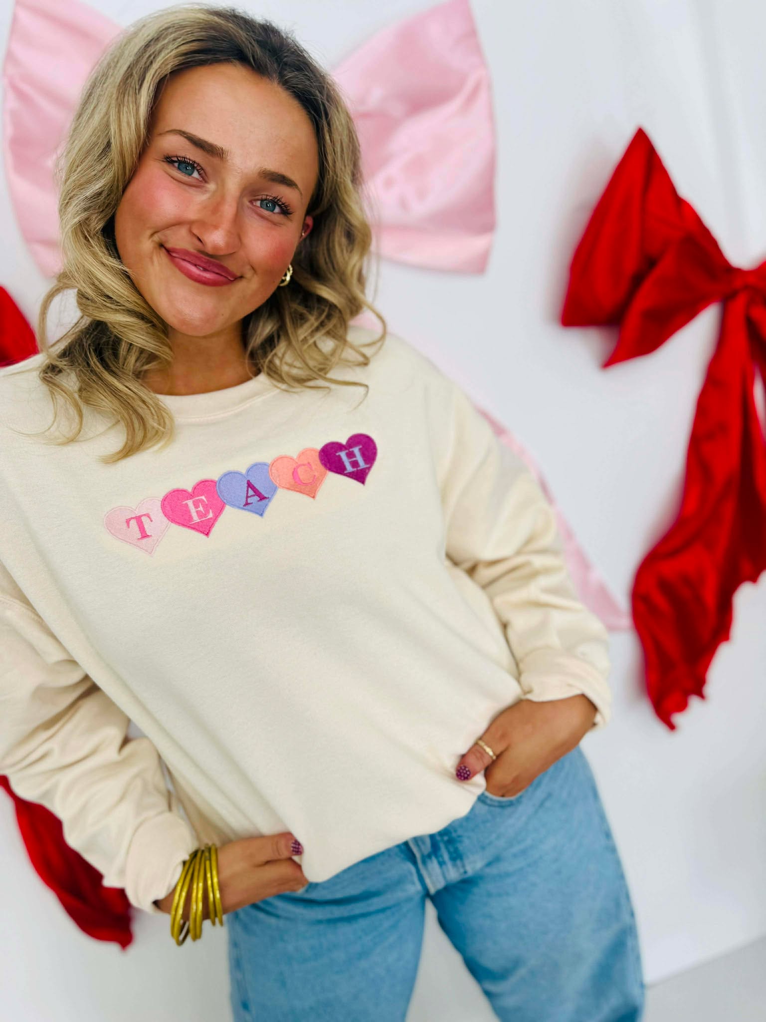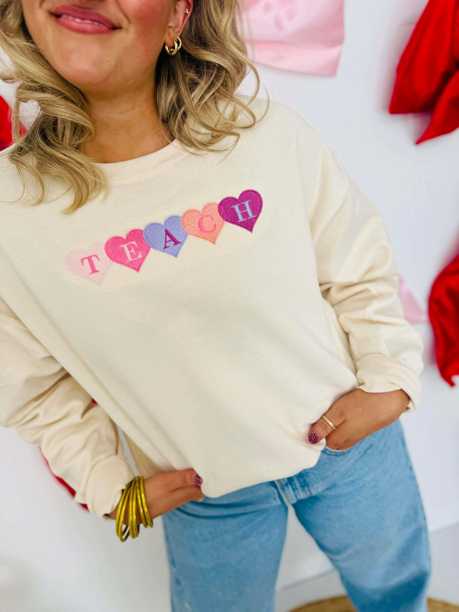 Teach Heart Embroidered Sweet Cream Sweatshirt