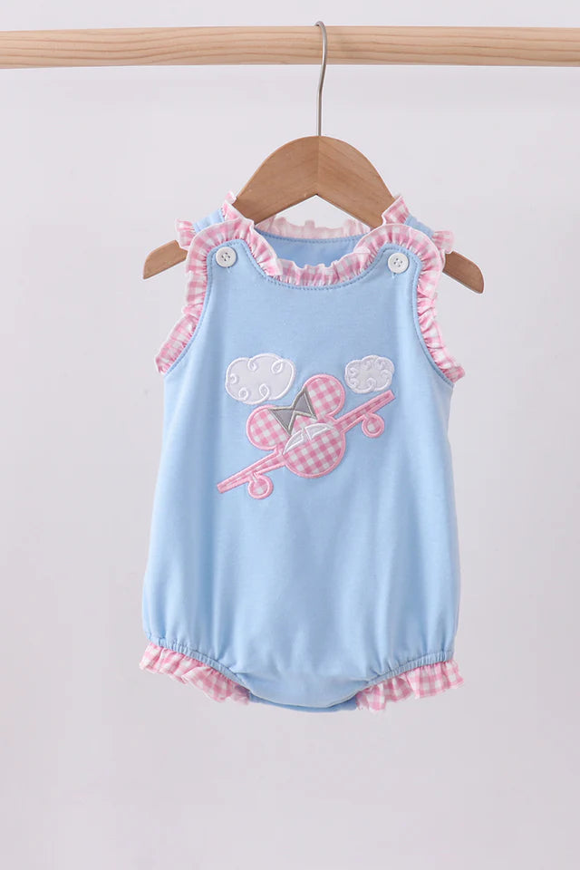 Girls Blue Mouse Plane Smocked Bubble