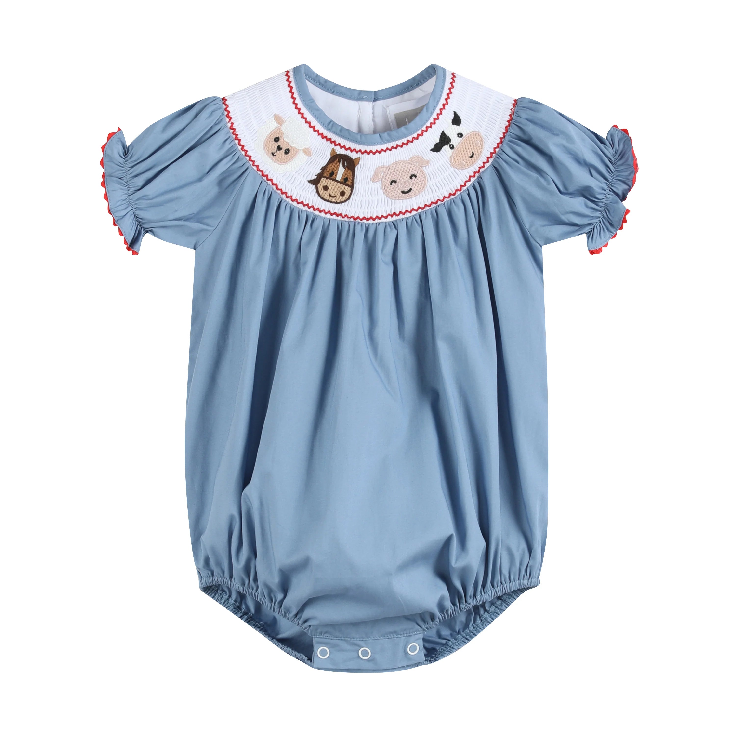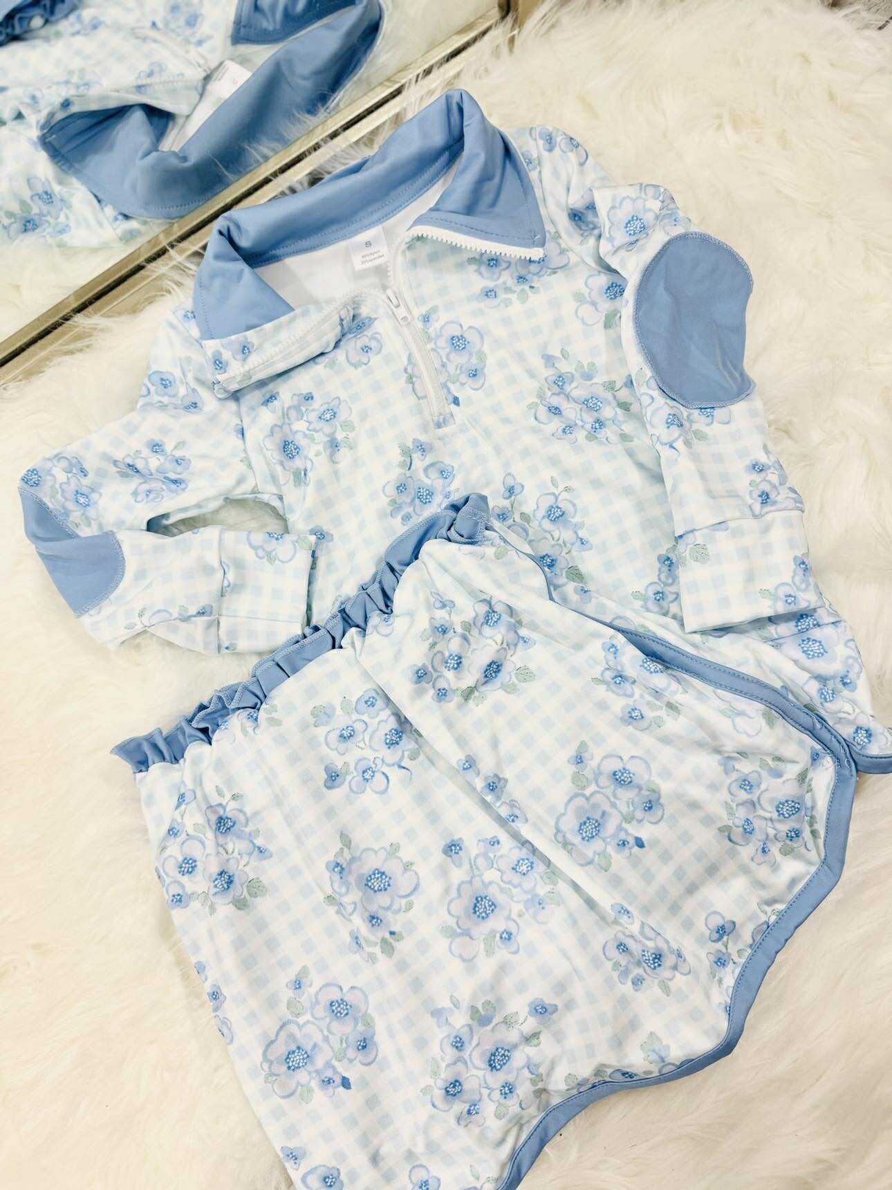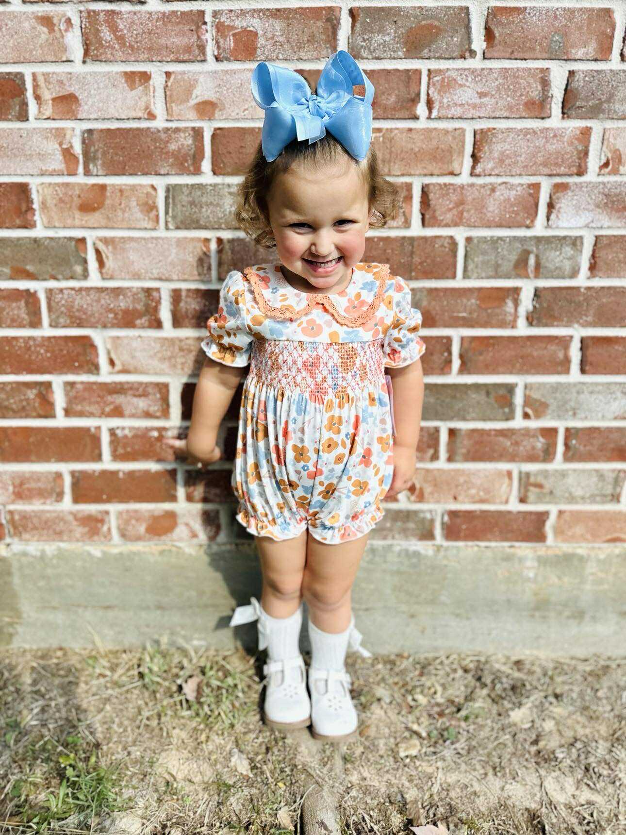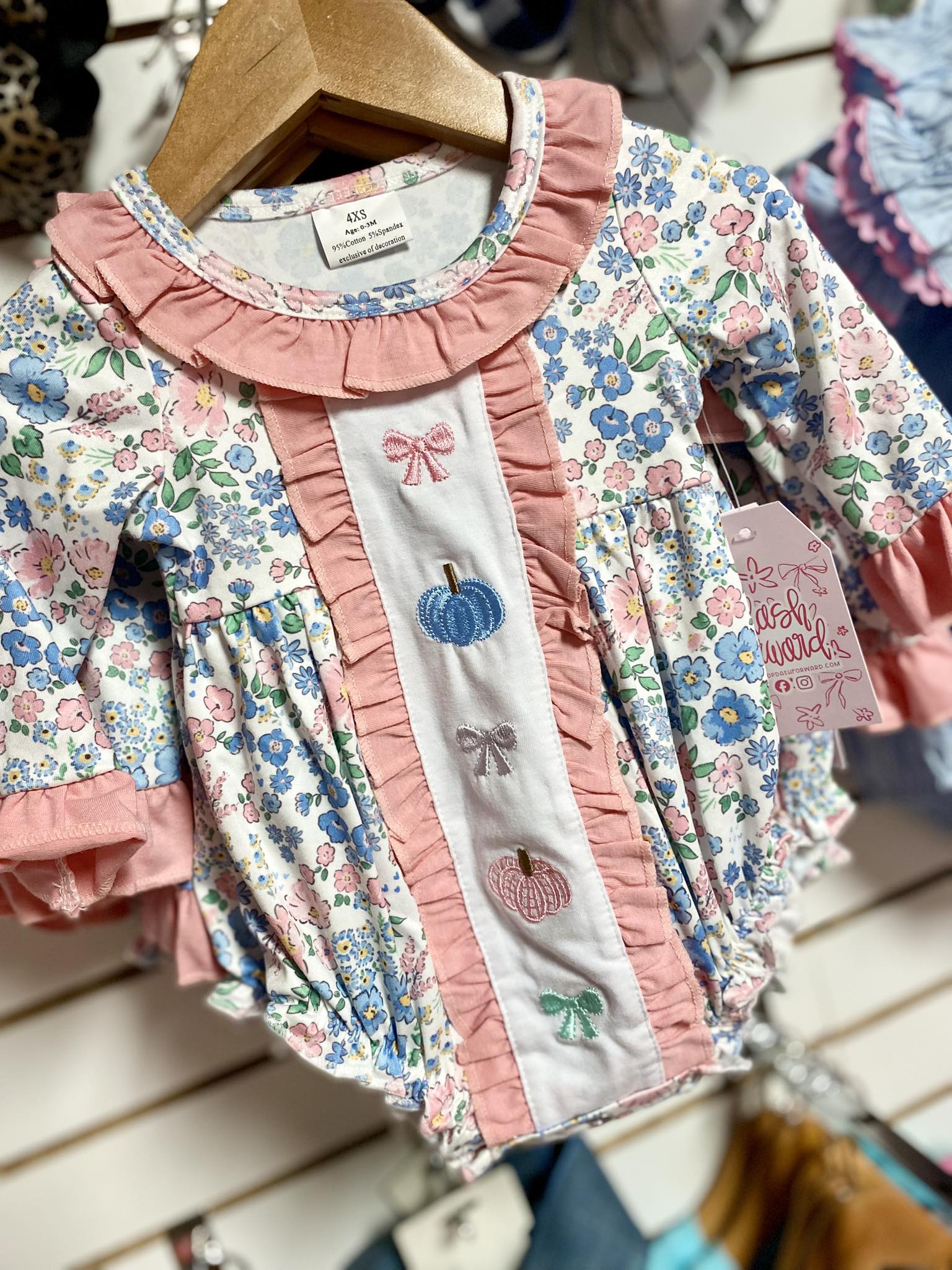 Girl's Blue Pumpkin Smocked Bloomer Set