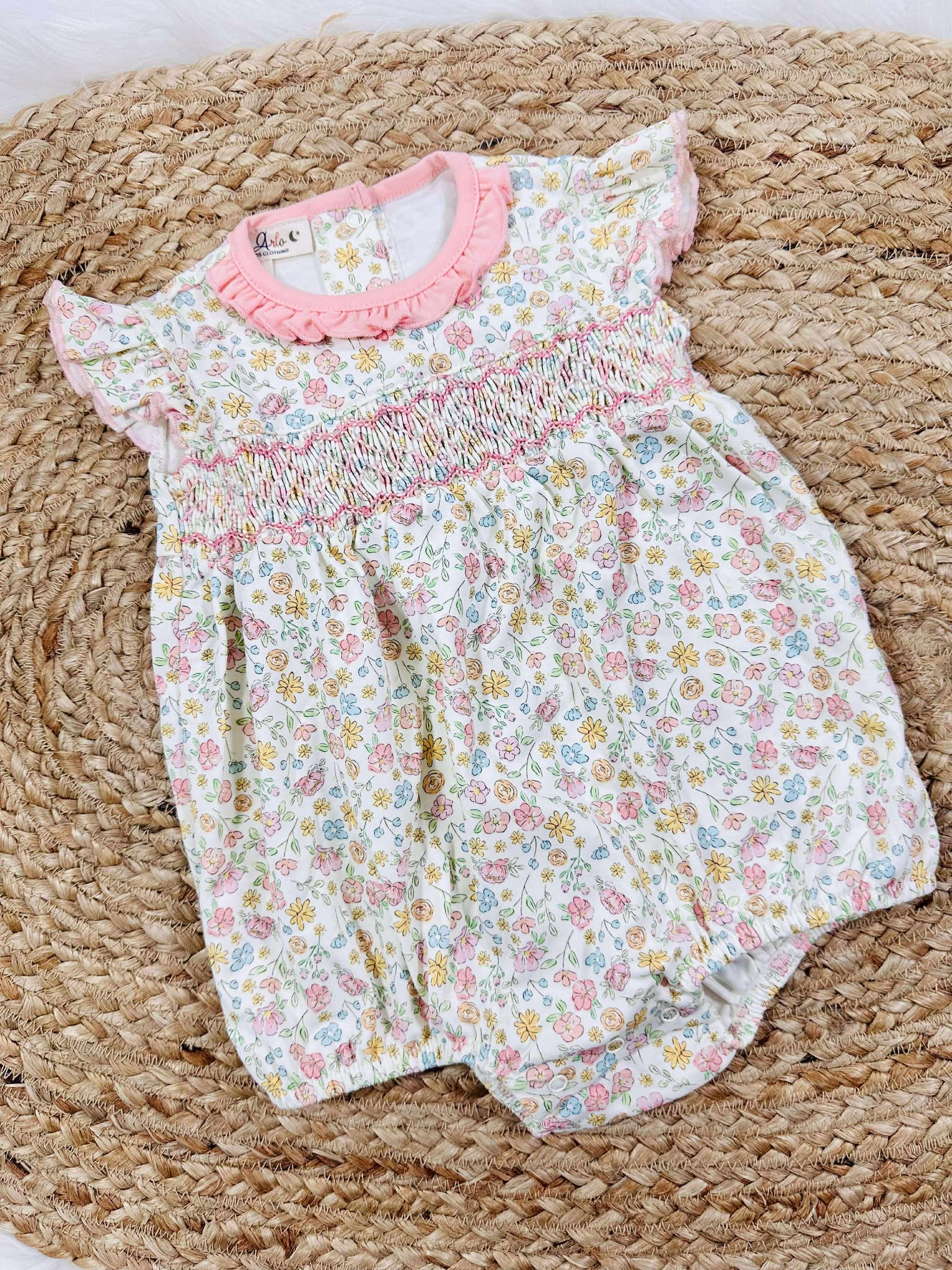 Peek-A-Boo Wishes Smocked Footie -Pink