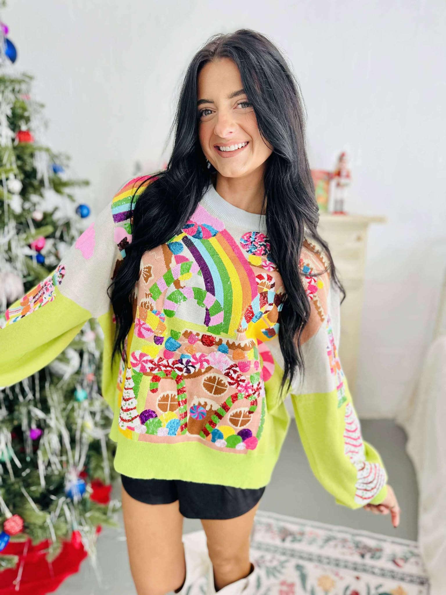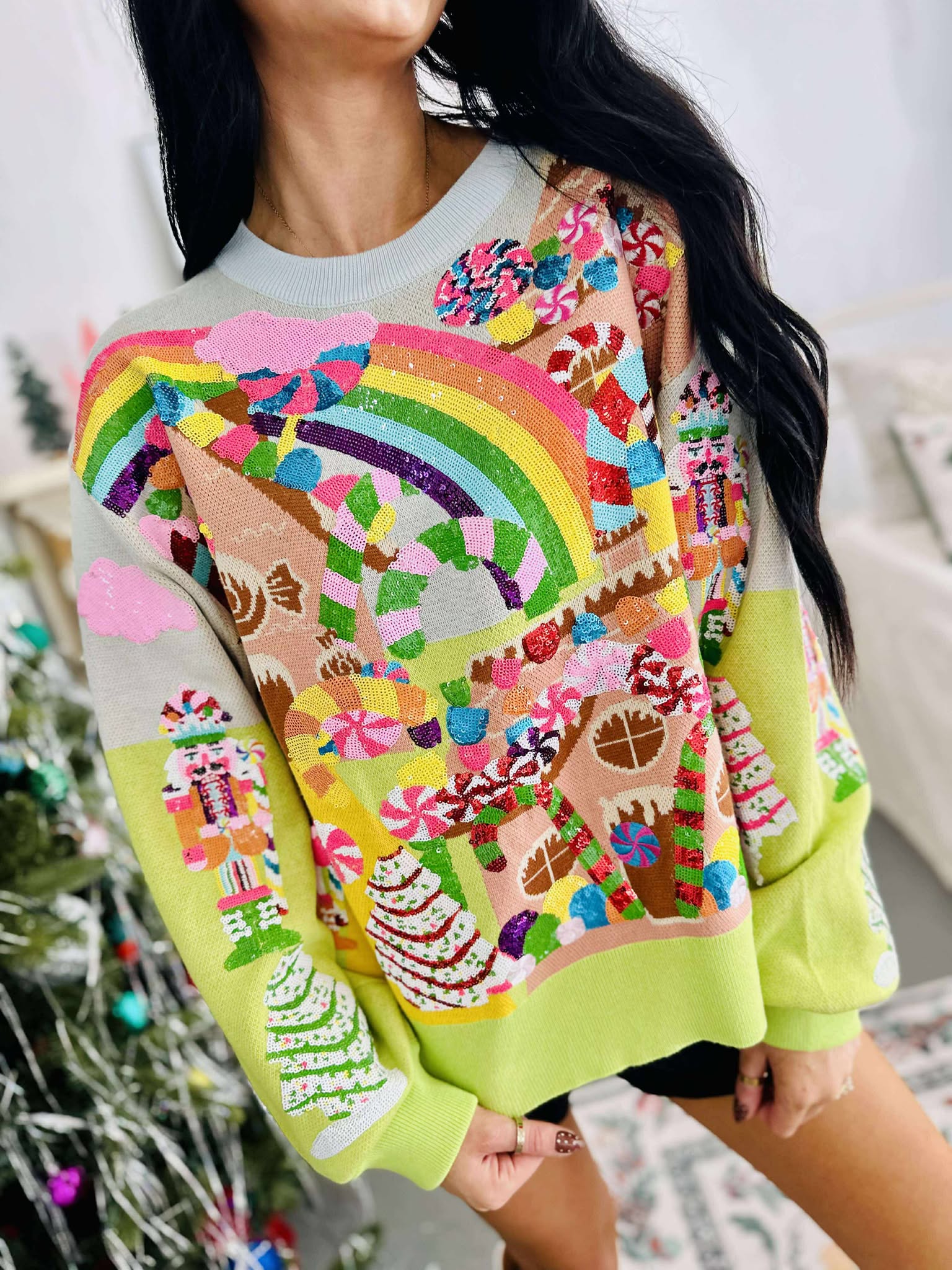 Queen Of Sparkles Multi Christmas Candyland Knit Sweater