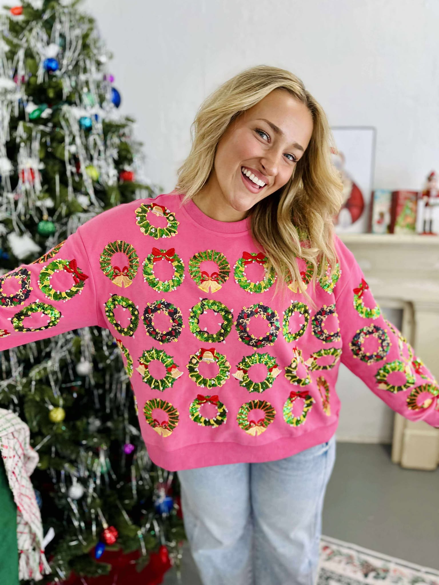 Queen Of Sparkles Hot Pink Multi Wreaths Sweatshirt
