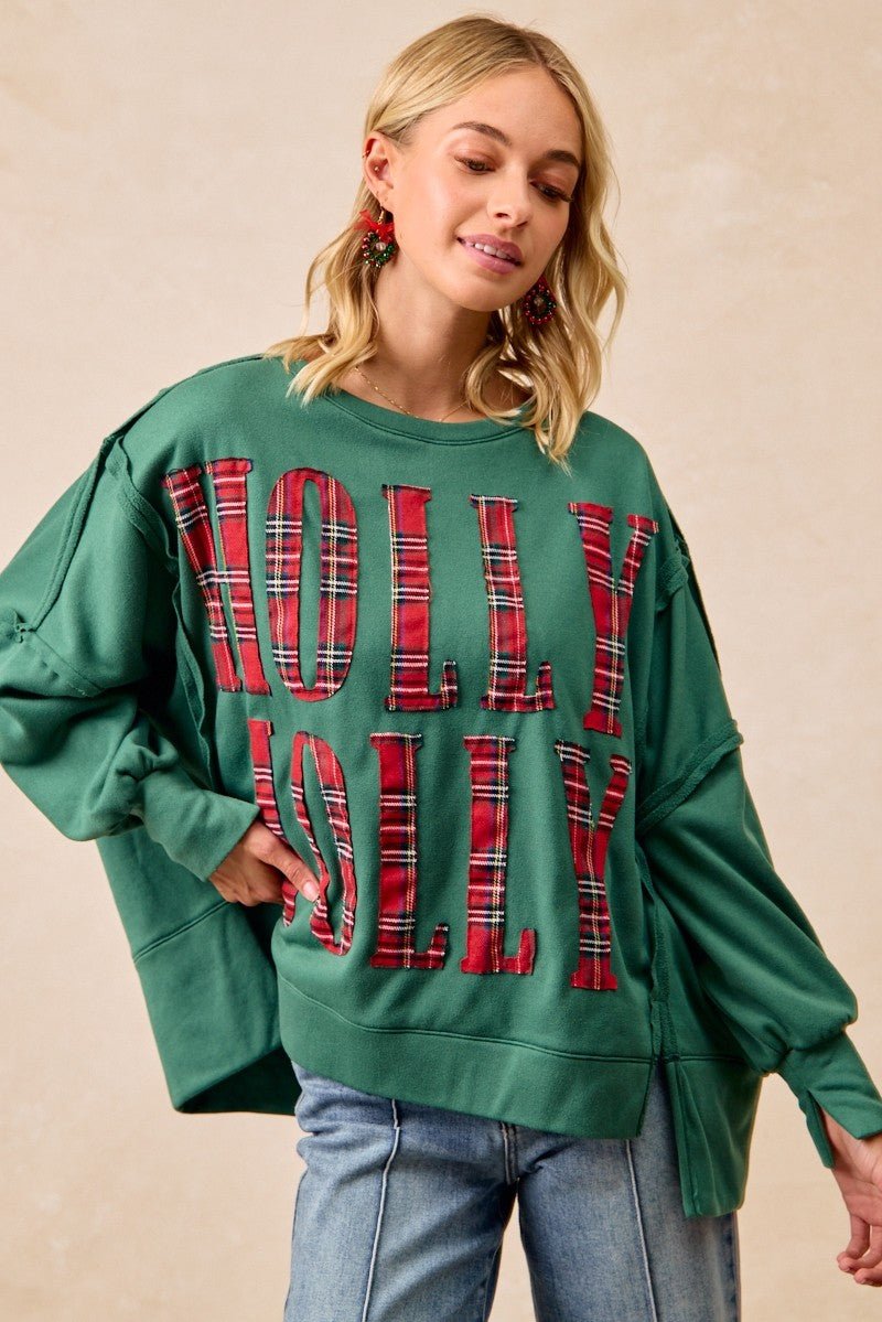 Christmas Plaid Holly Jolly Lettering Sweatshirt