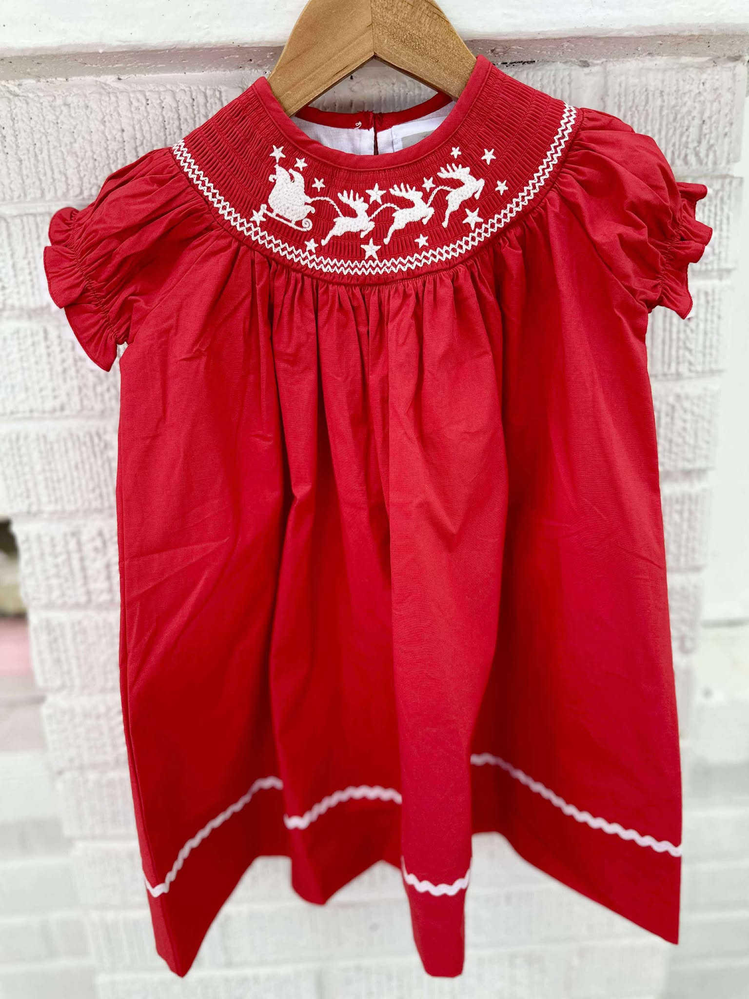 Girl's Red Smock Santa Sleigh Dress