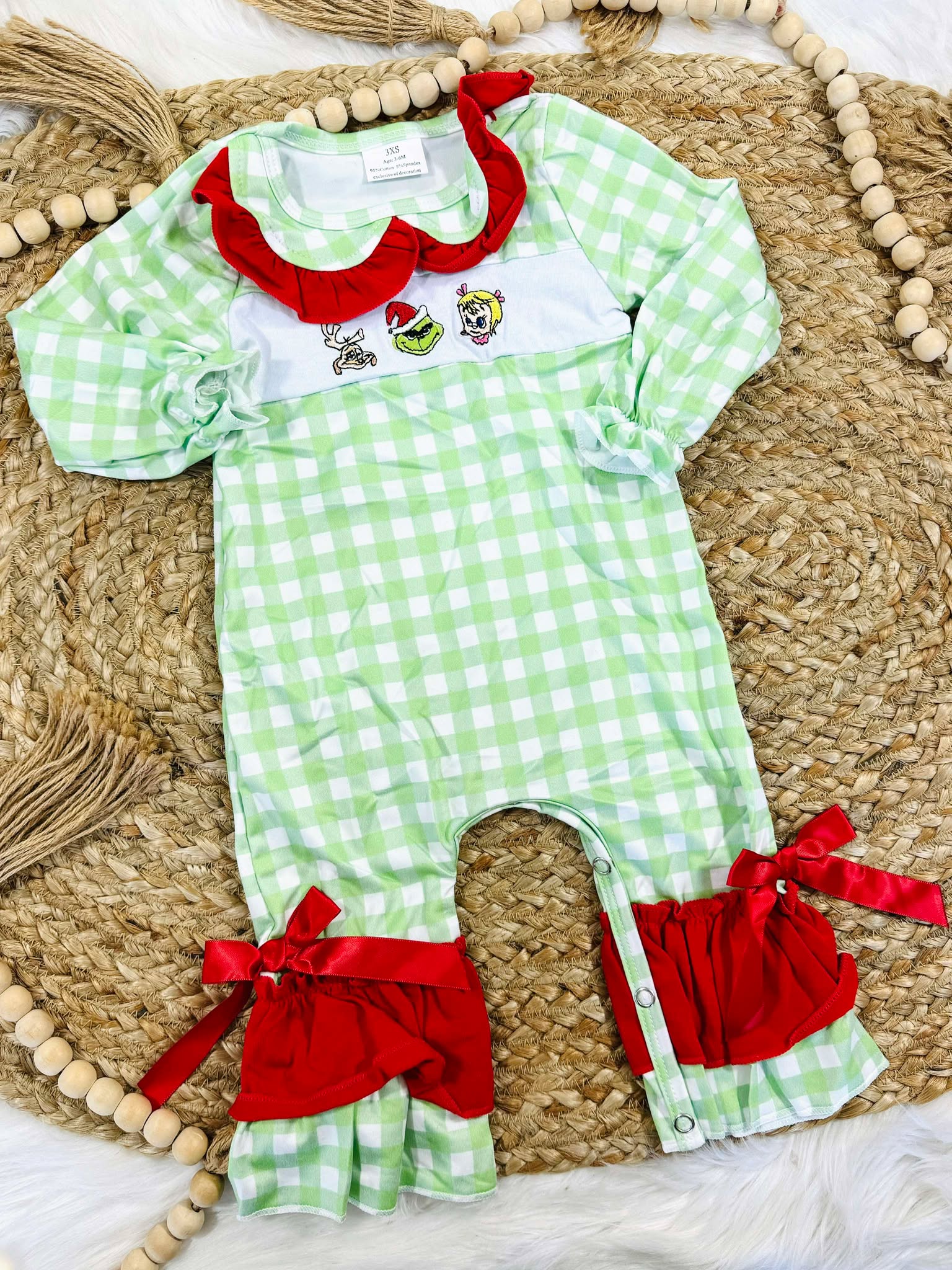 Character Green Plaid Ribbon Romper