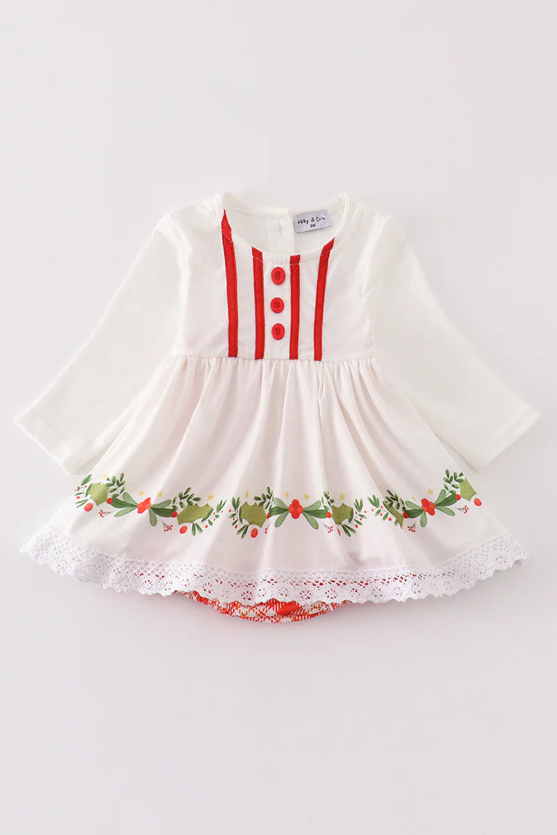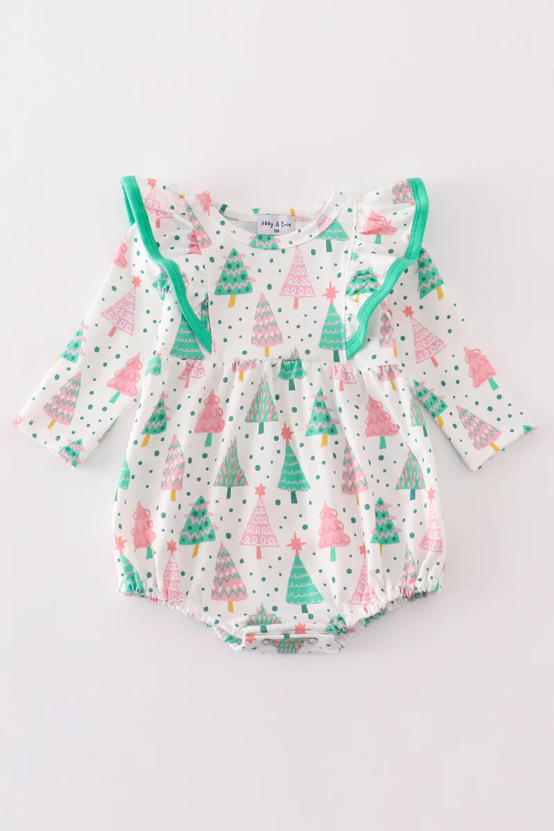 Green Christmas Tree Print Ruffle Bubble