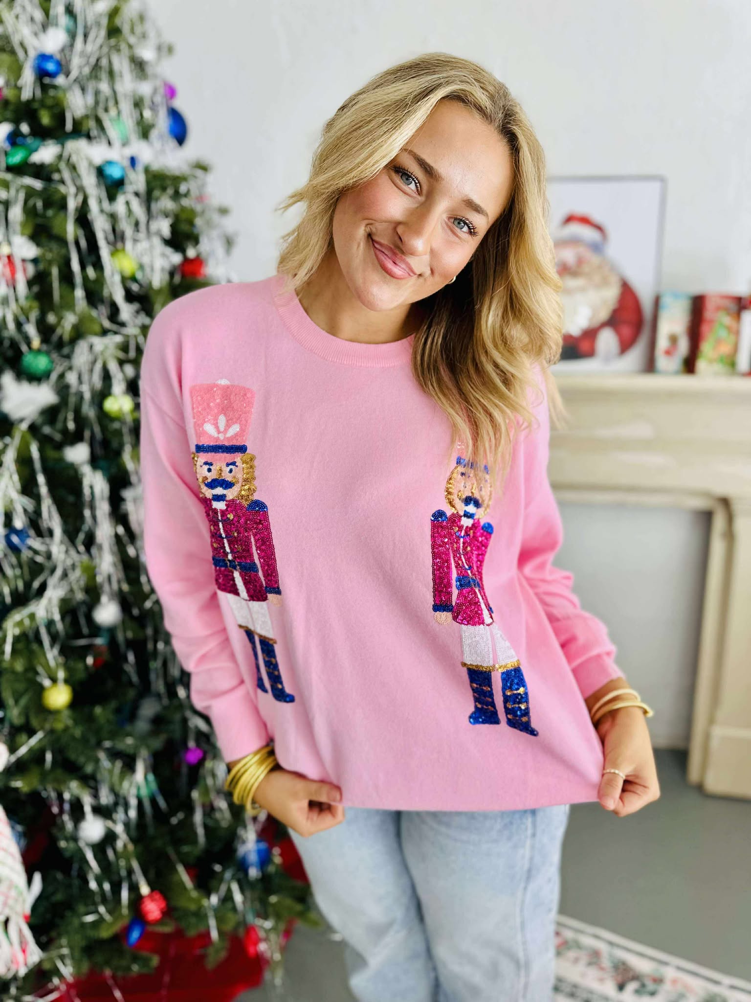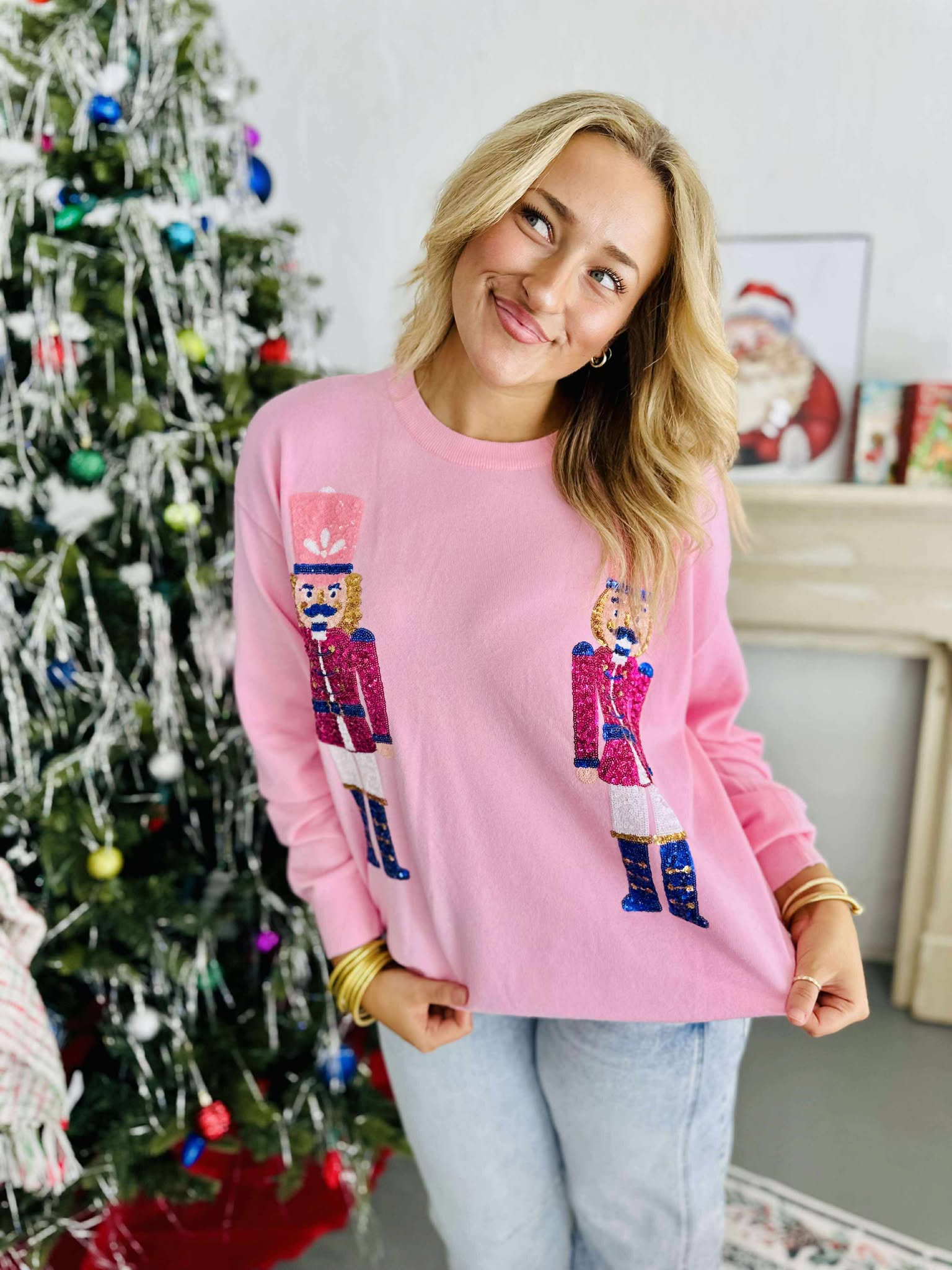 Nutcracker Sequin Pink Sweater