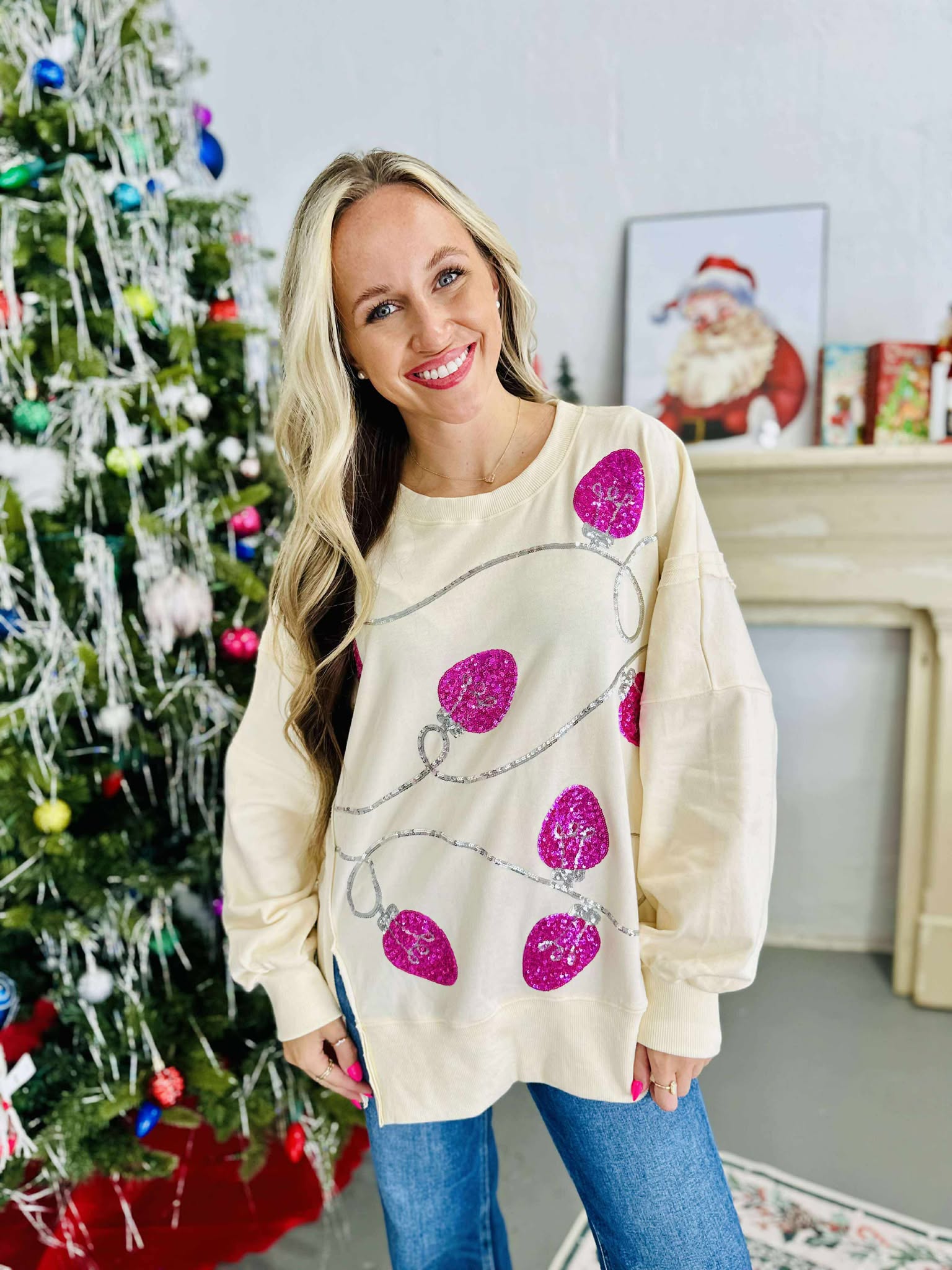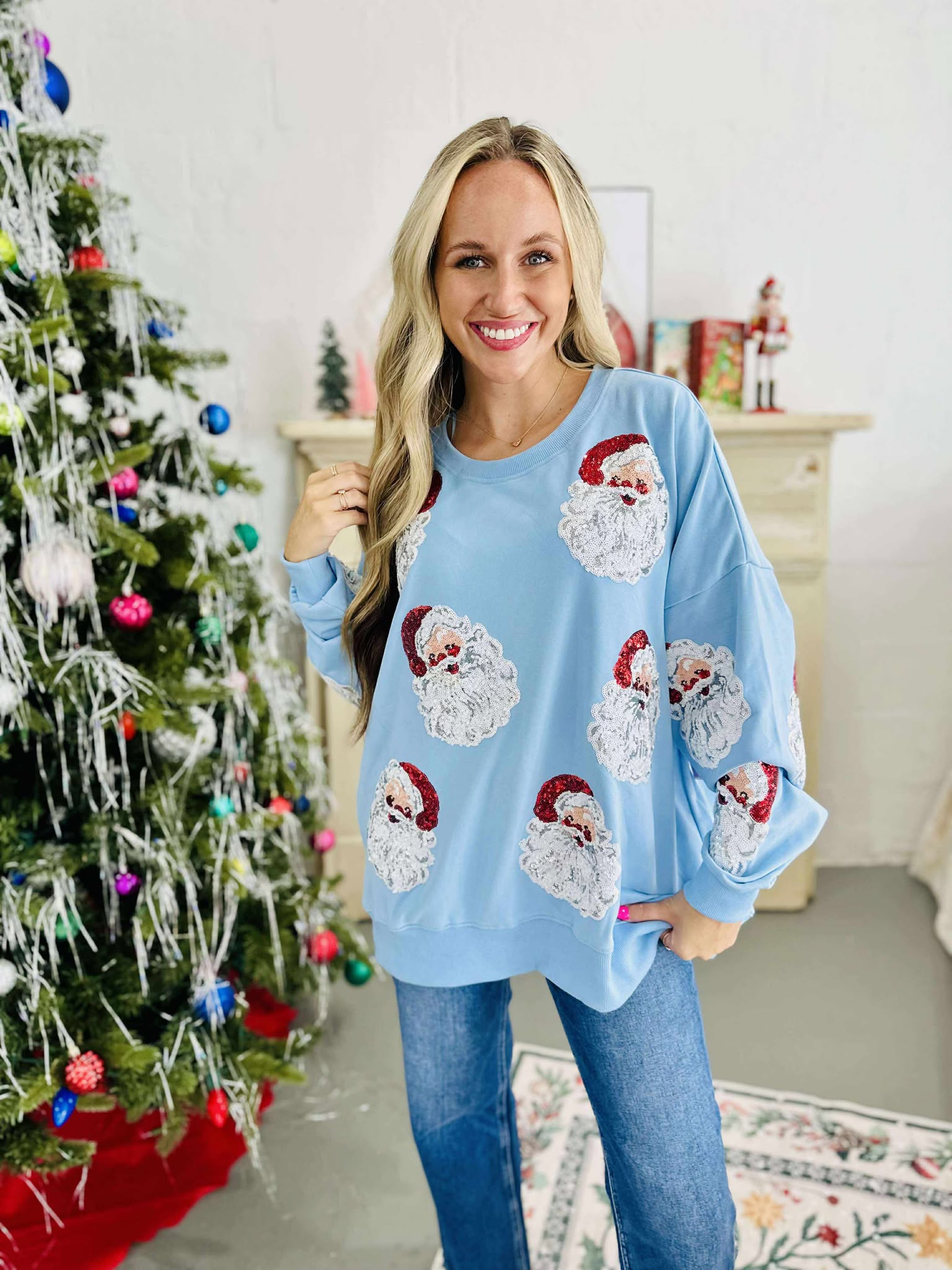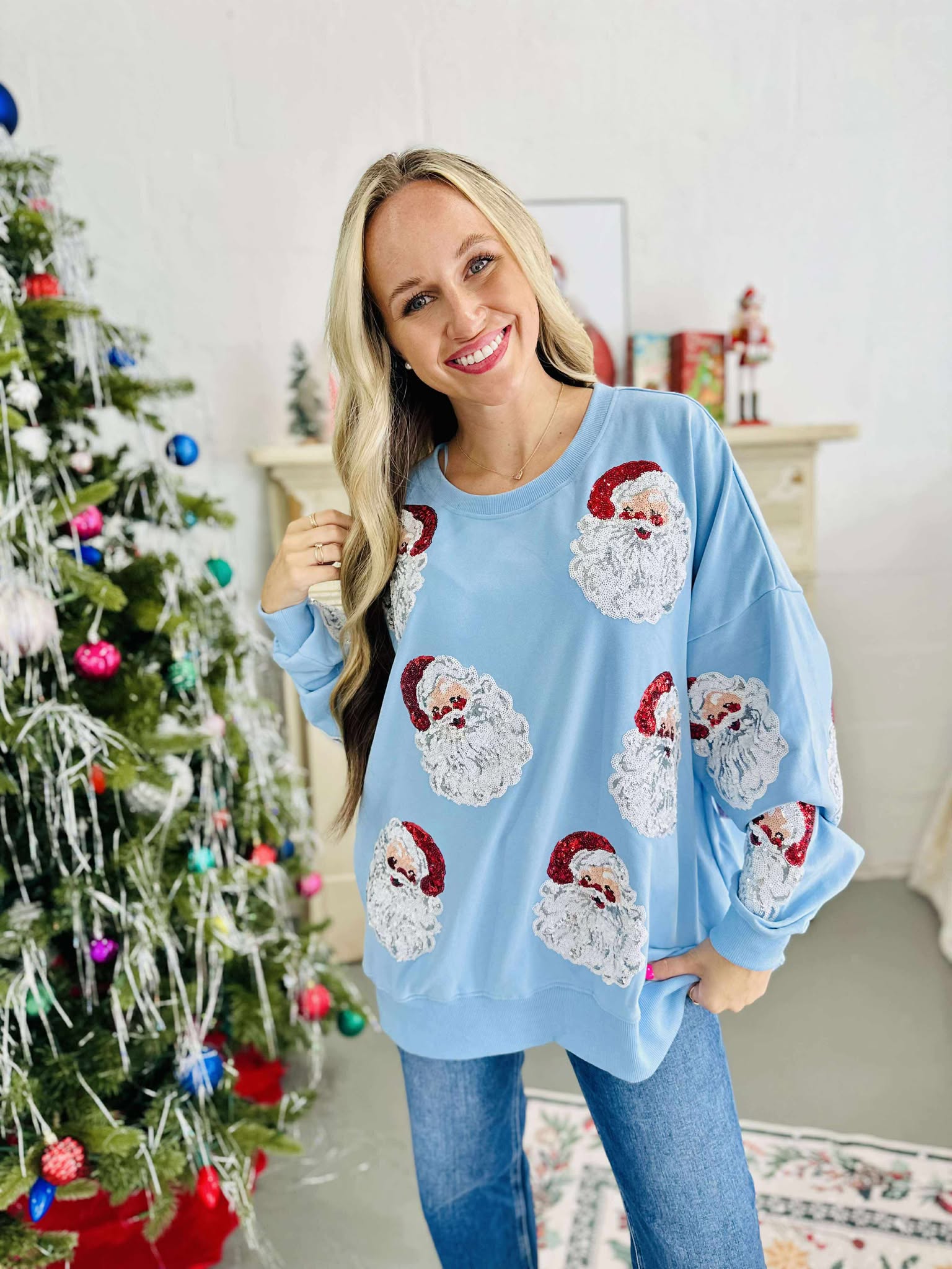 Blue Santa Sequin Pullover