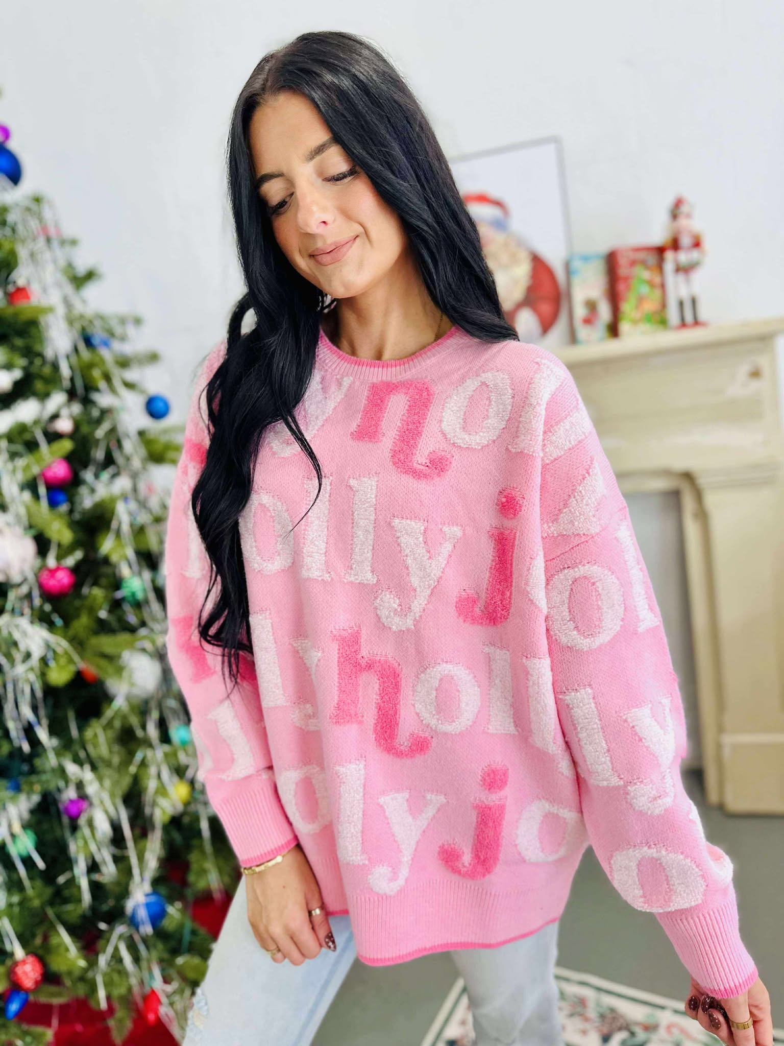 Holly Jolly Pink Yarn Pullover
