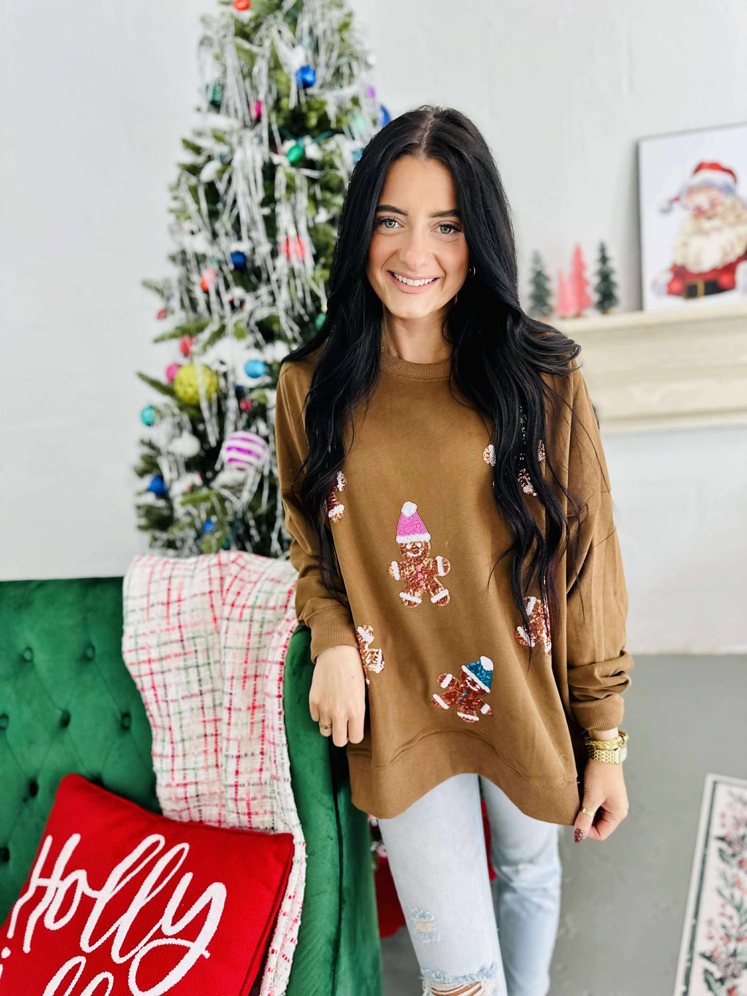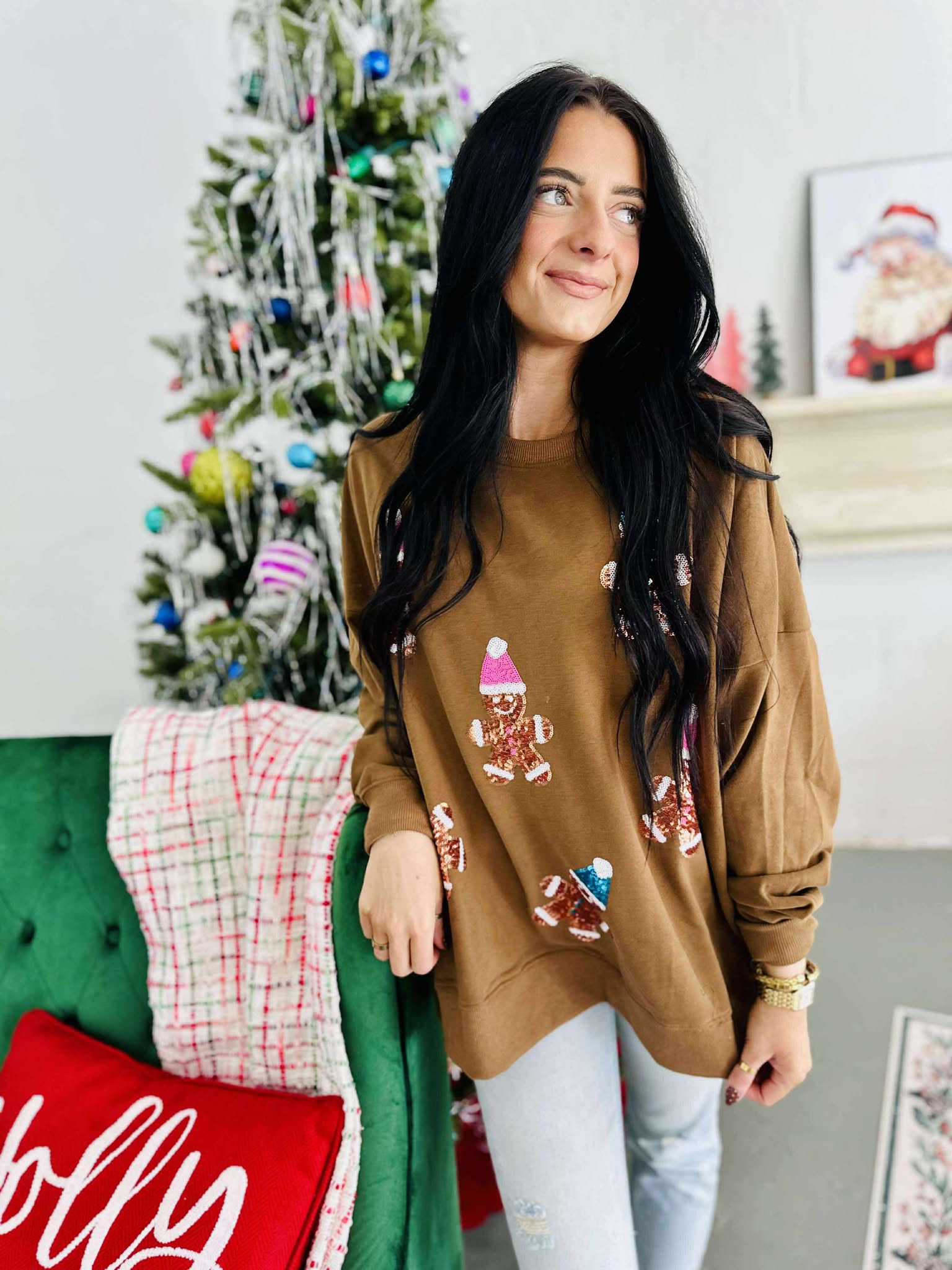 Sequin Gingerbread Brown Pullover