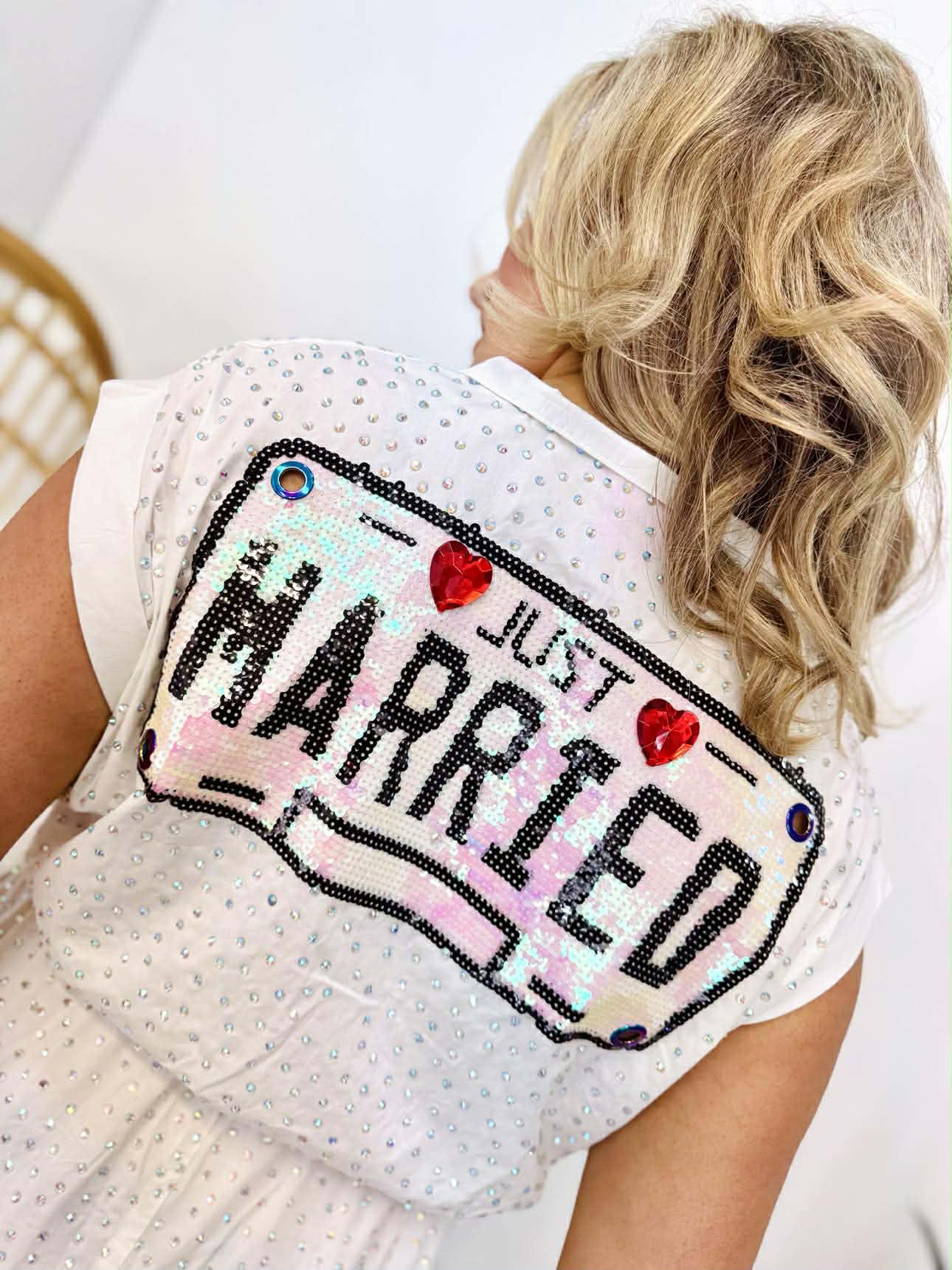 Queen Of Sparkles White Rhinestone 'Just Married' Romper