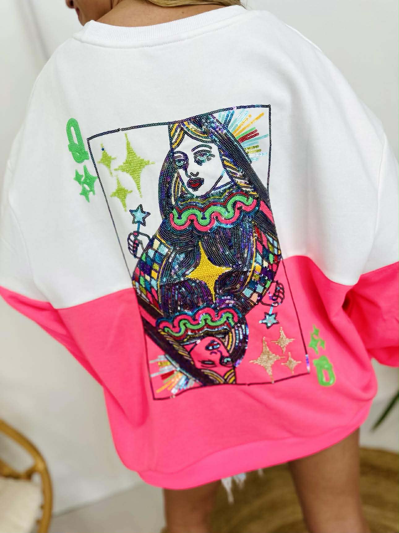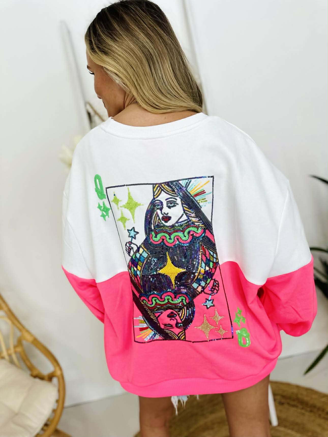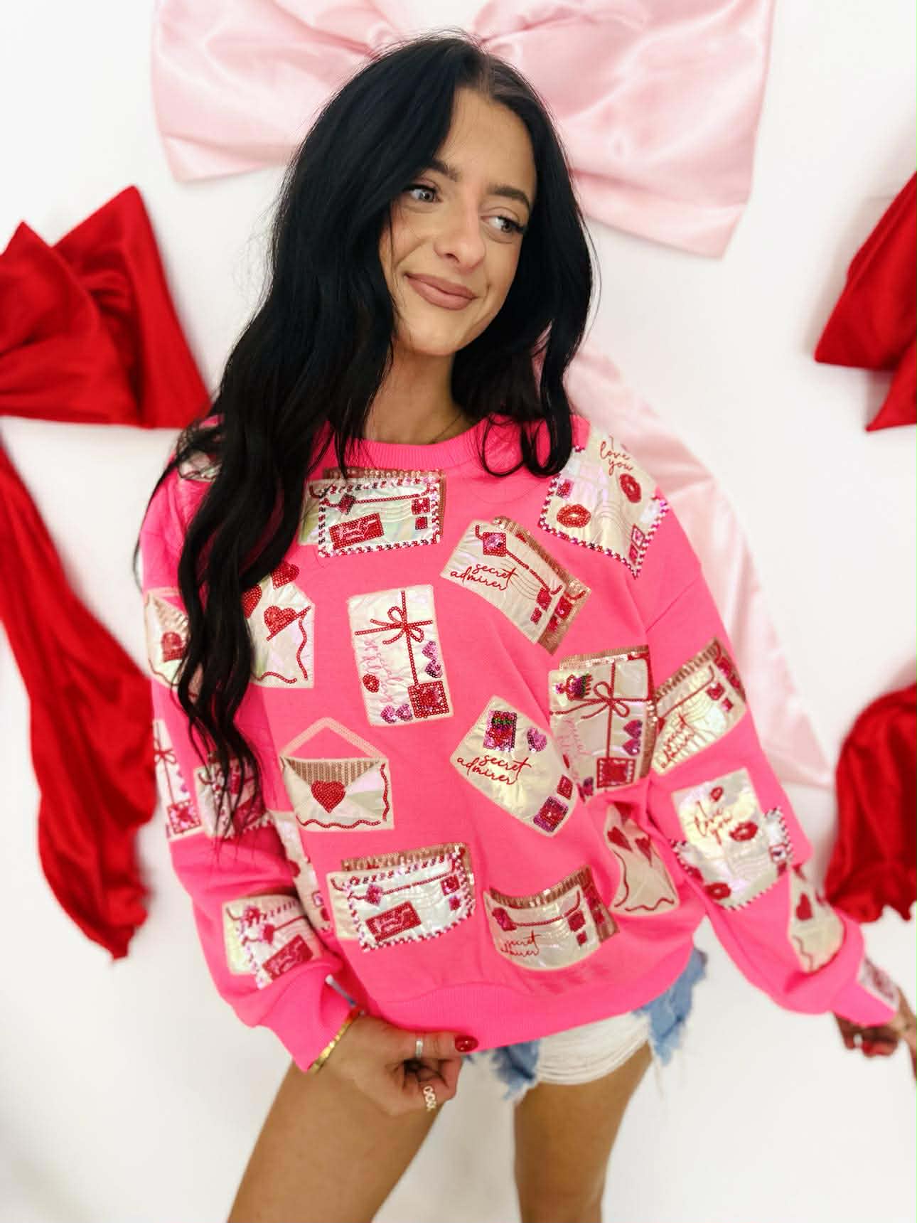 Queen Of Sparkles Neon Pink Love Letters Sweatshirt