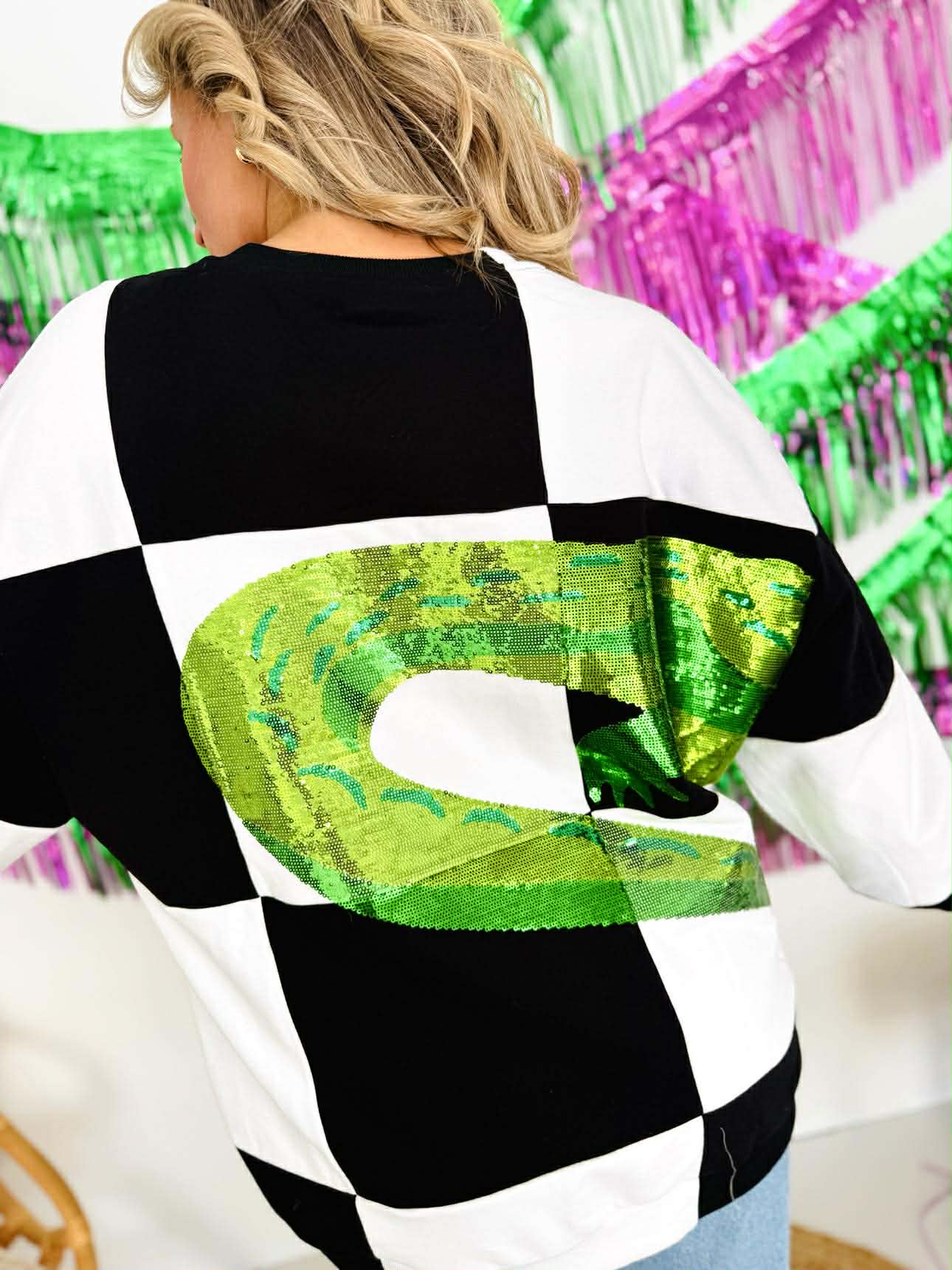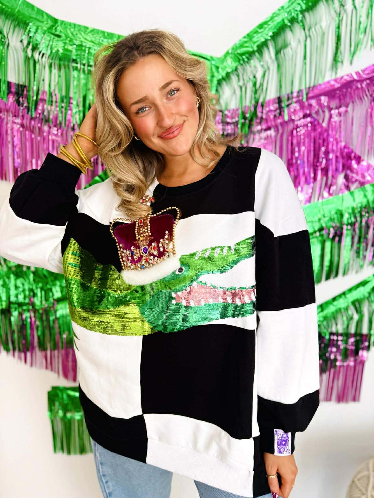 Queen Of Sparkles Black & White Checkered Alligator Queen Sweatshirt