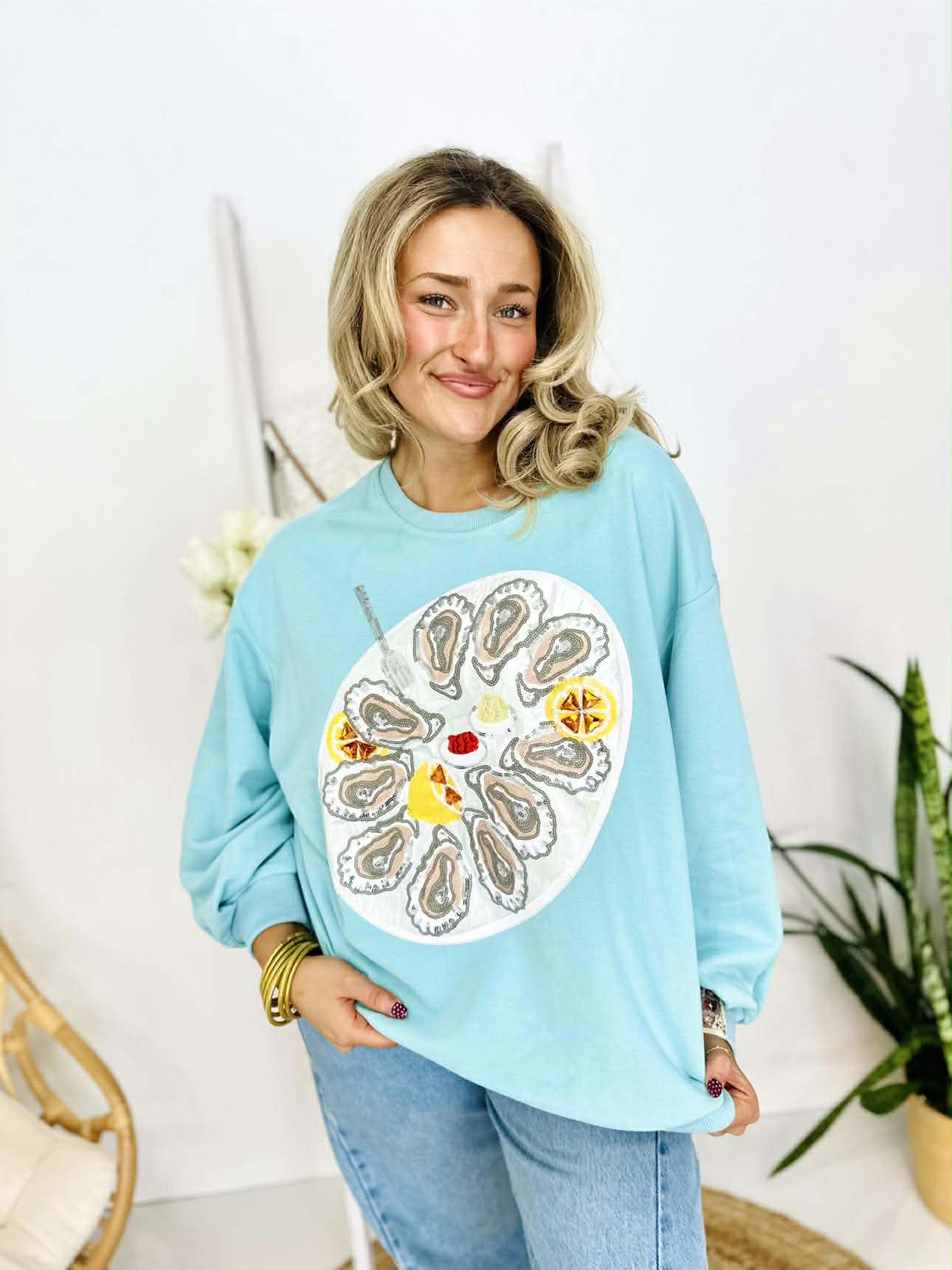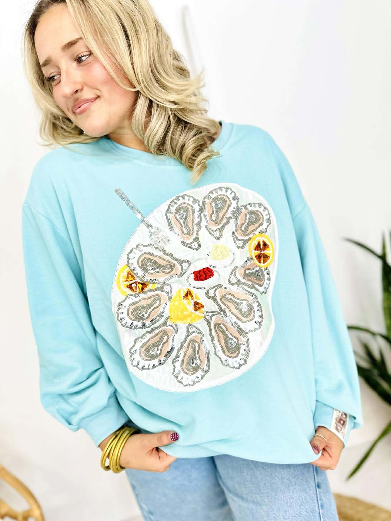 Queen Of Sparkles Mint Blue Oyster Platter Sweatshirt