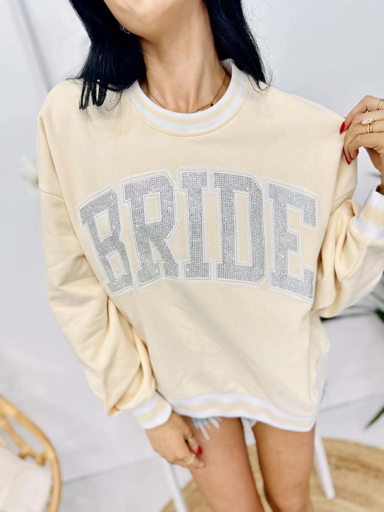 Queen Of Sparkles Beige & White Rhinestone 'Bride' Sweatshirt