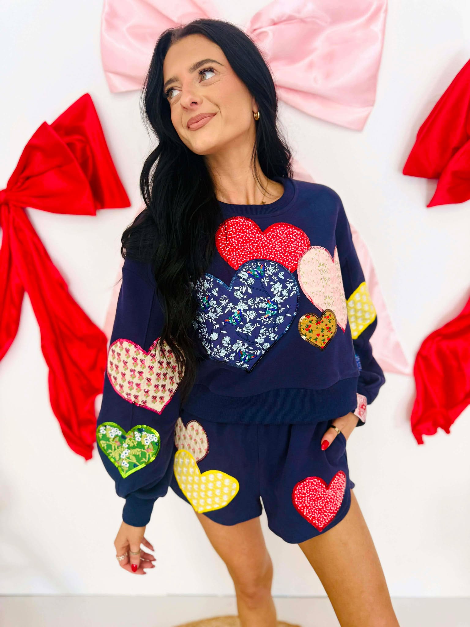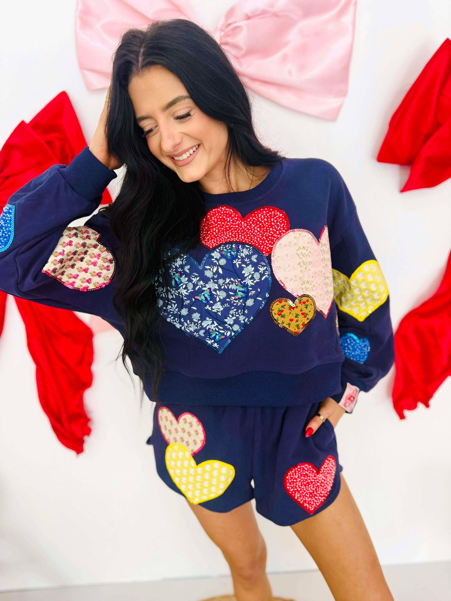 Queen Of Sparkles Navy Multi Embroidered Hearts Sweatshirt