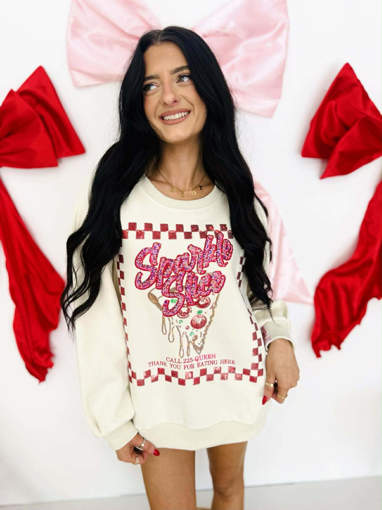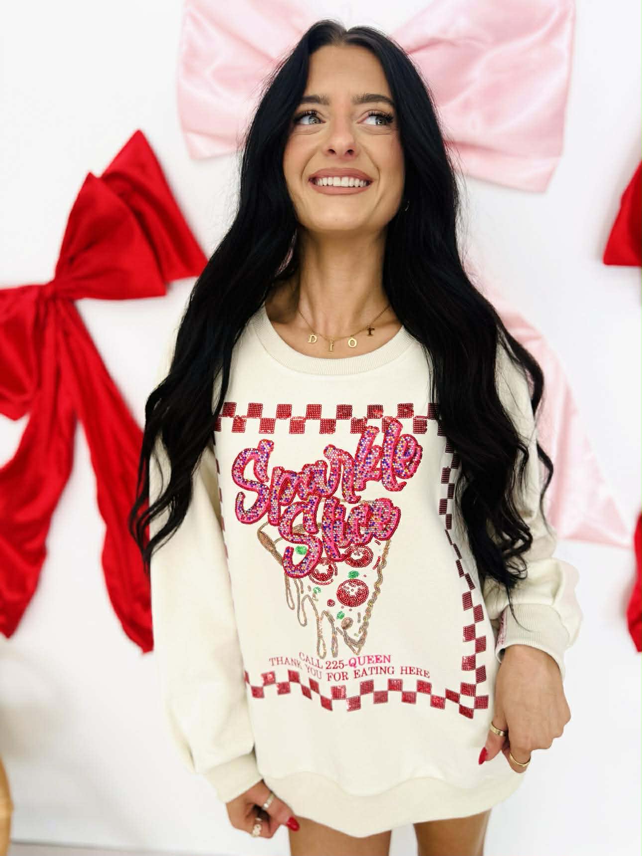 Queen Of Sparkles Beige & Red 'Sparkle Slice' Sweatshirt