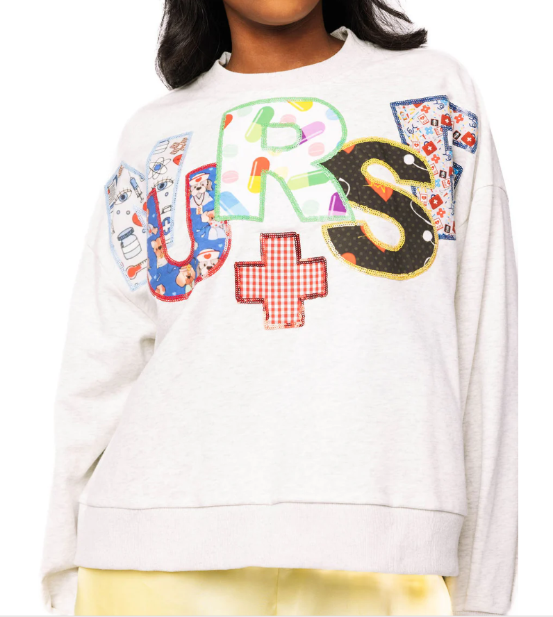 Queen Of Sparkles Grey 'Nurse' Multi Fabric Sweatshirt