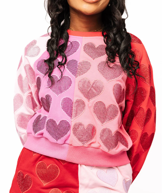 Queen Of Sparkles Colorblock Rhinestone Hearts Sweatshirt