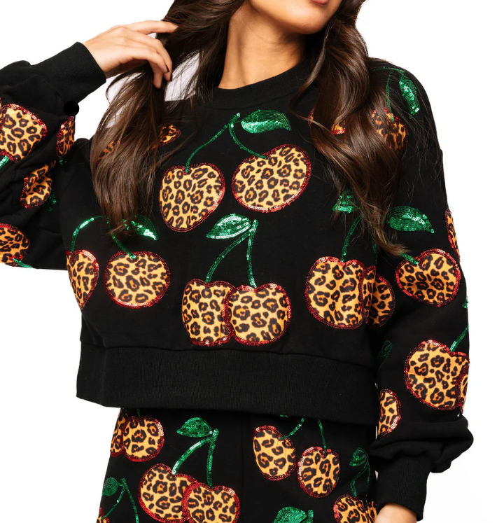 Queen Of Sparkles Black Leopard Cherry Sweatshirt