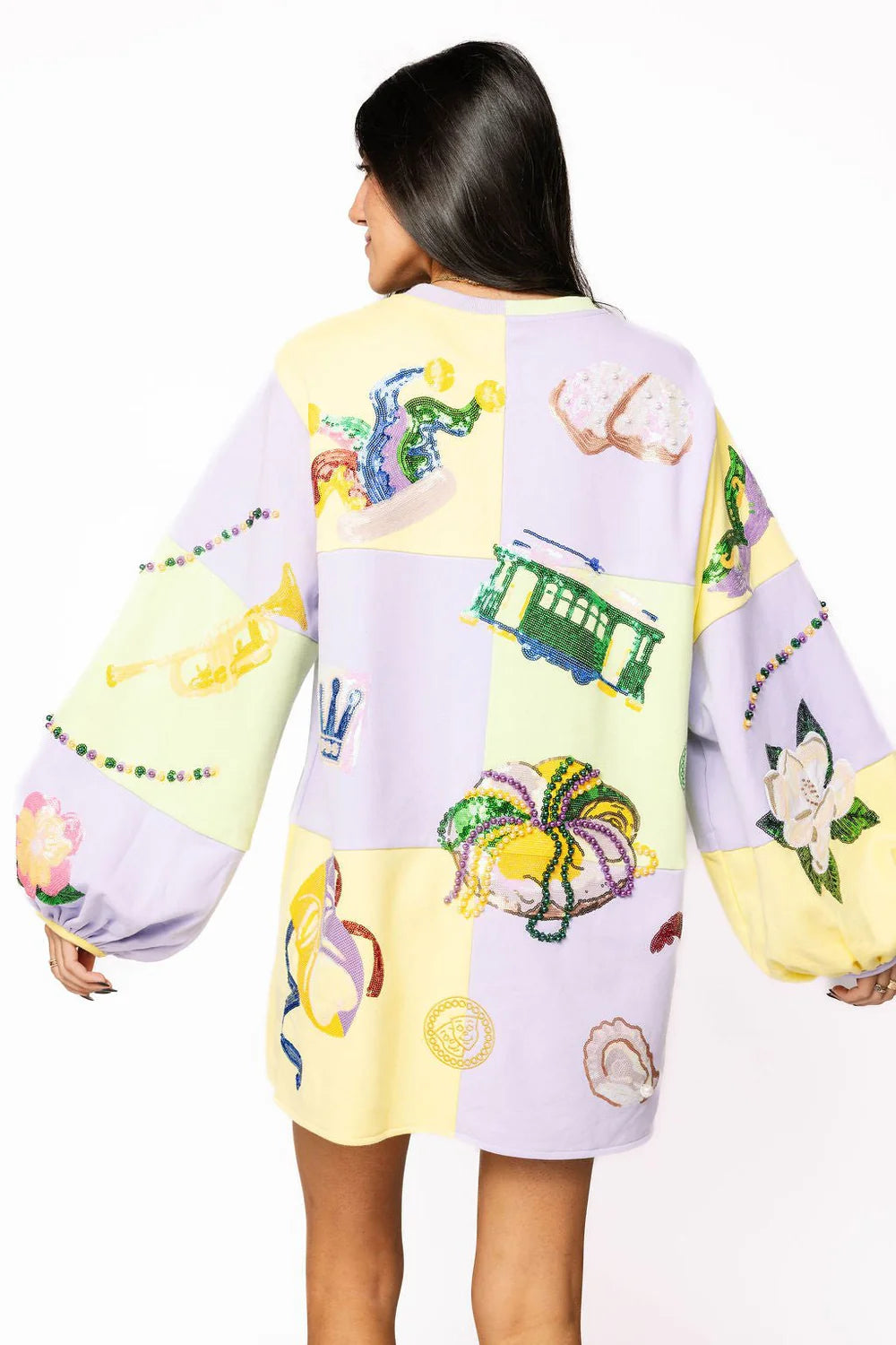 Queen Of Sparkles Green 'Happy Mardi Gras' Street Tile Sweatshirt