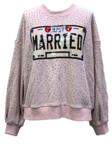 Queen Of Sparkles Pale Pink Rhinestone 'Just Married' Sweatshirt