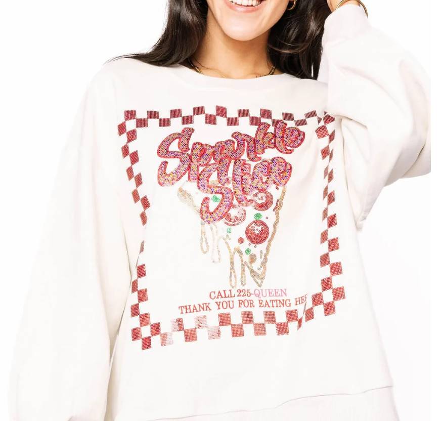 Queen Of Sparkles Beige & Red 'Sparkle Slice' Sweatshirt
