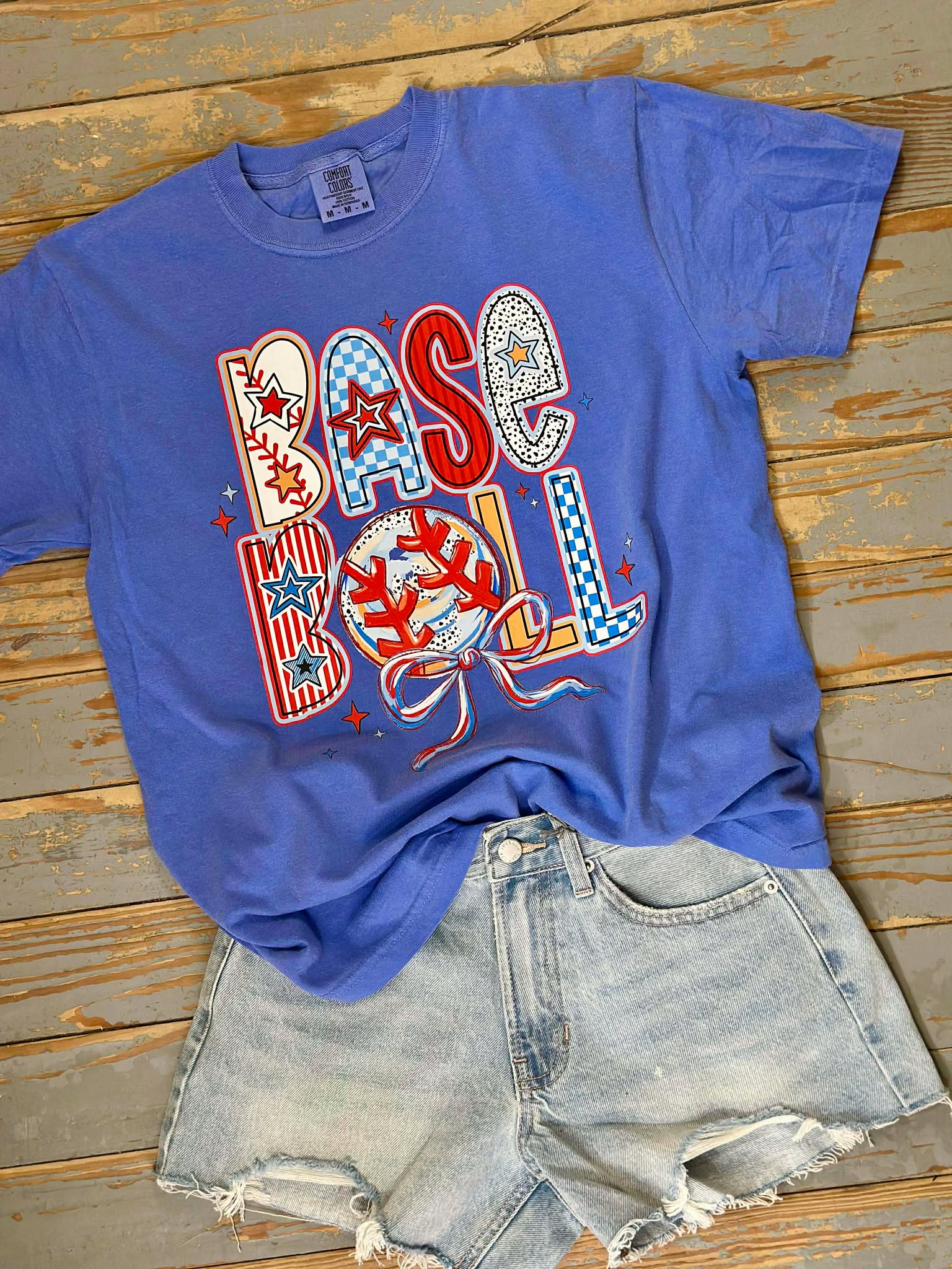 BASEBALL Ribbon Flo Blue Graphic Tee